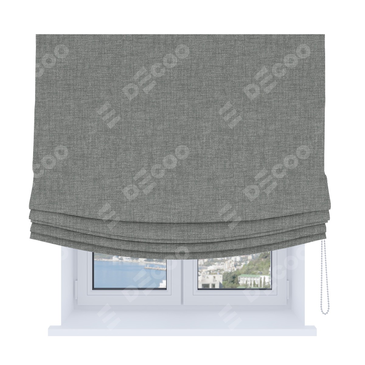 Римская штора Soft производителя «Cortin», используется для проёма, пошита из ткани рогожка димаут тёмно-серый, артикул ткани 80418. Имеет универсальный механизм и подходит для монтажа: на потолок, на стену и в нишу. В отличие от стандартных римских штор, римская штора Soft не имеет горизонтальных вставок и нижнего отвеса. Это позволяет ткани произвольно драпироваться в свободные мягкие складки.