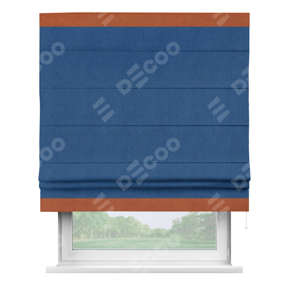 Римская штора «Кортин» с кантом Горизонт, для проема, ткань вельвет синий