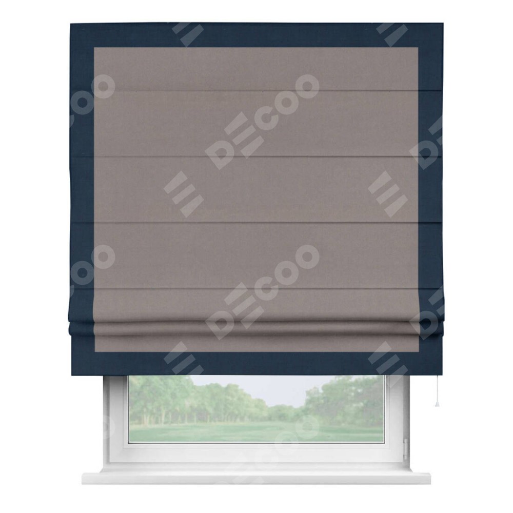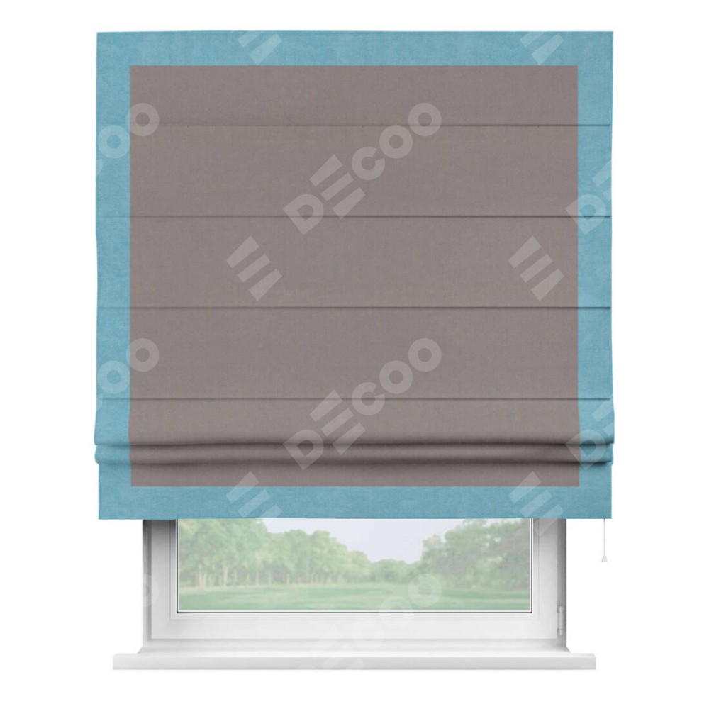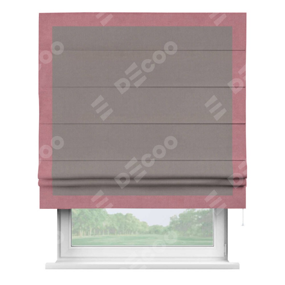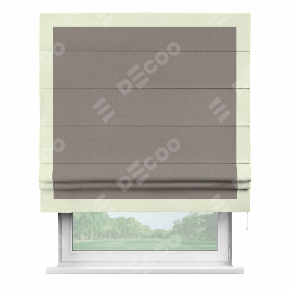 Римская штора производителя «Cortin», используется для проёма, пошита из ткани вельвет темно-бежевый, артикул ткани 82527. Отделка шторы кантом «Чесс», ткань для канта используется из вельвета разной расцветки на выбор. Имеет универсальный механизм и подходит для монтажа: на потолок, на стену и в нишу.
