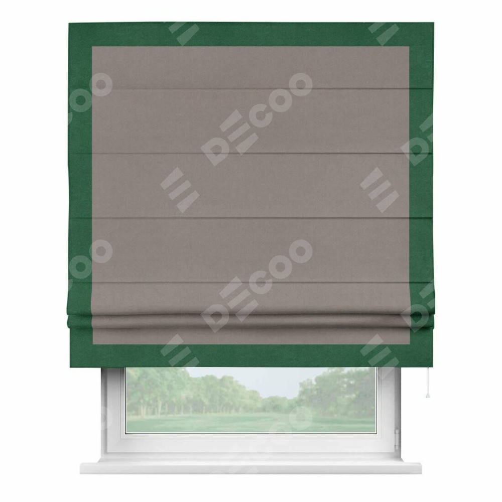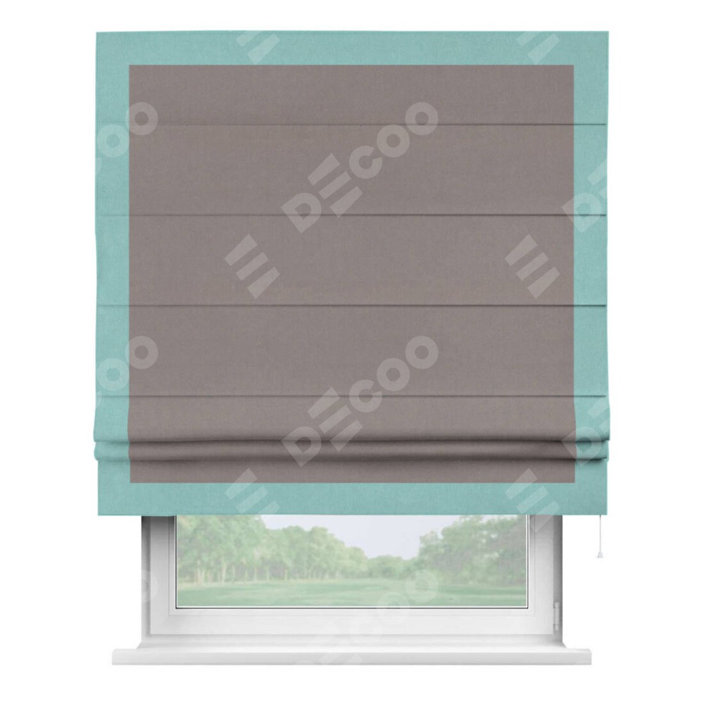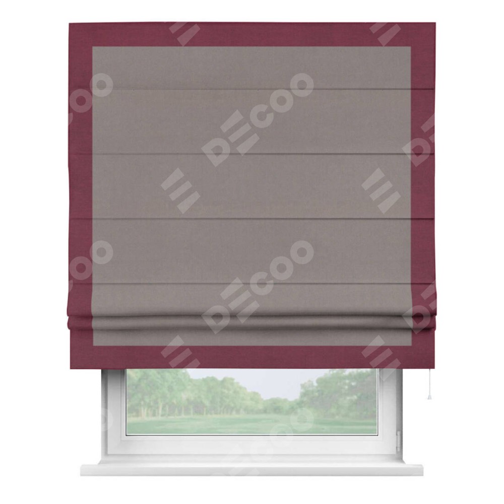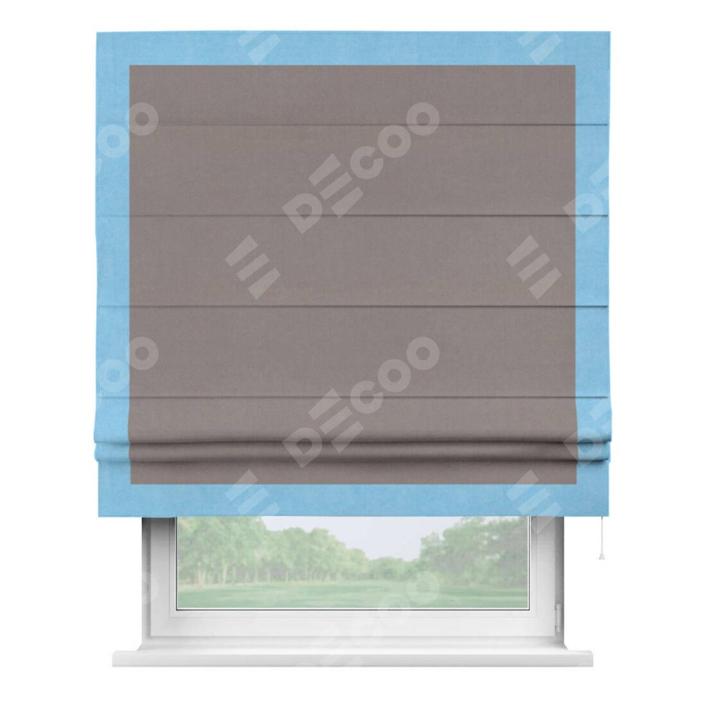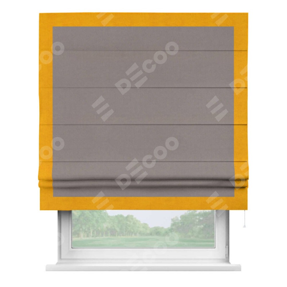Римская штора производителя «Cortin», используется для проёма, пошита из ткани вельвет темно-бежевый, артикул ткани 82527. Отделка шторы кантом «Чесс», ткань для канта используется из вельвета разной расцветки на выбор. Имеет универсальный механизм и подходит для монтажа: на потолок, на стену и в нишу.