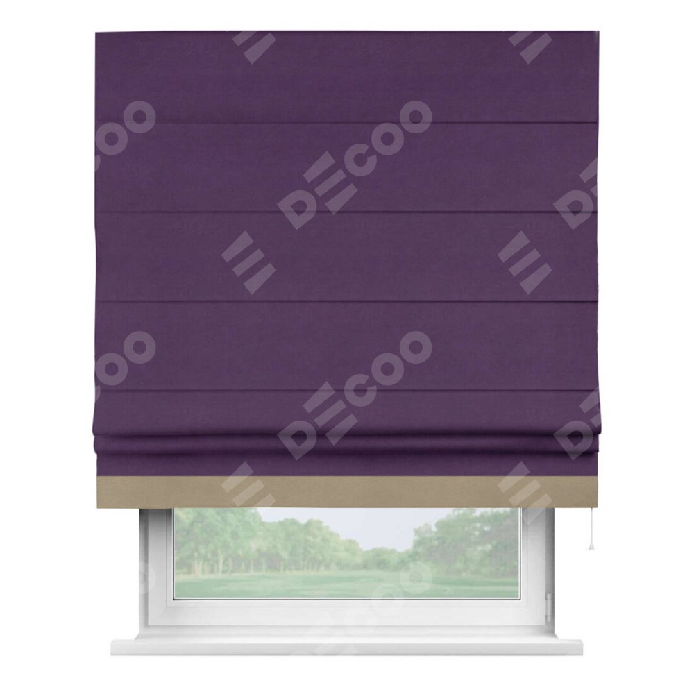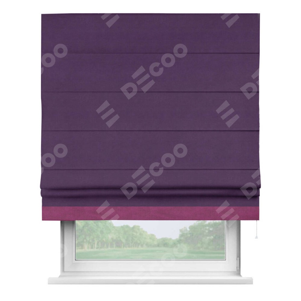 Римская штора «Кортин» с кантом Джестер, для проема, ткань вельвет темно-фиолетовый