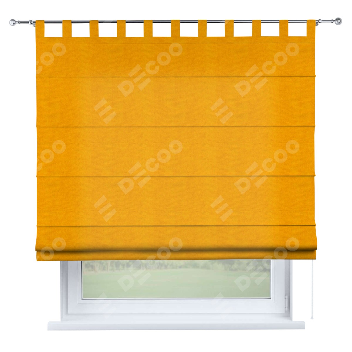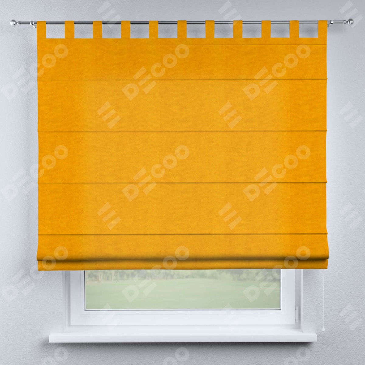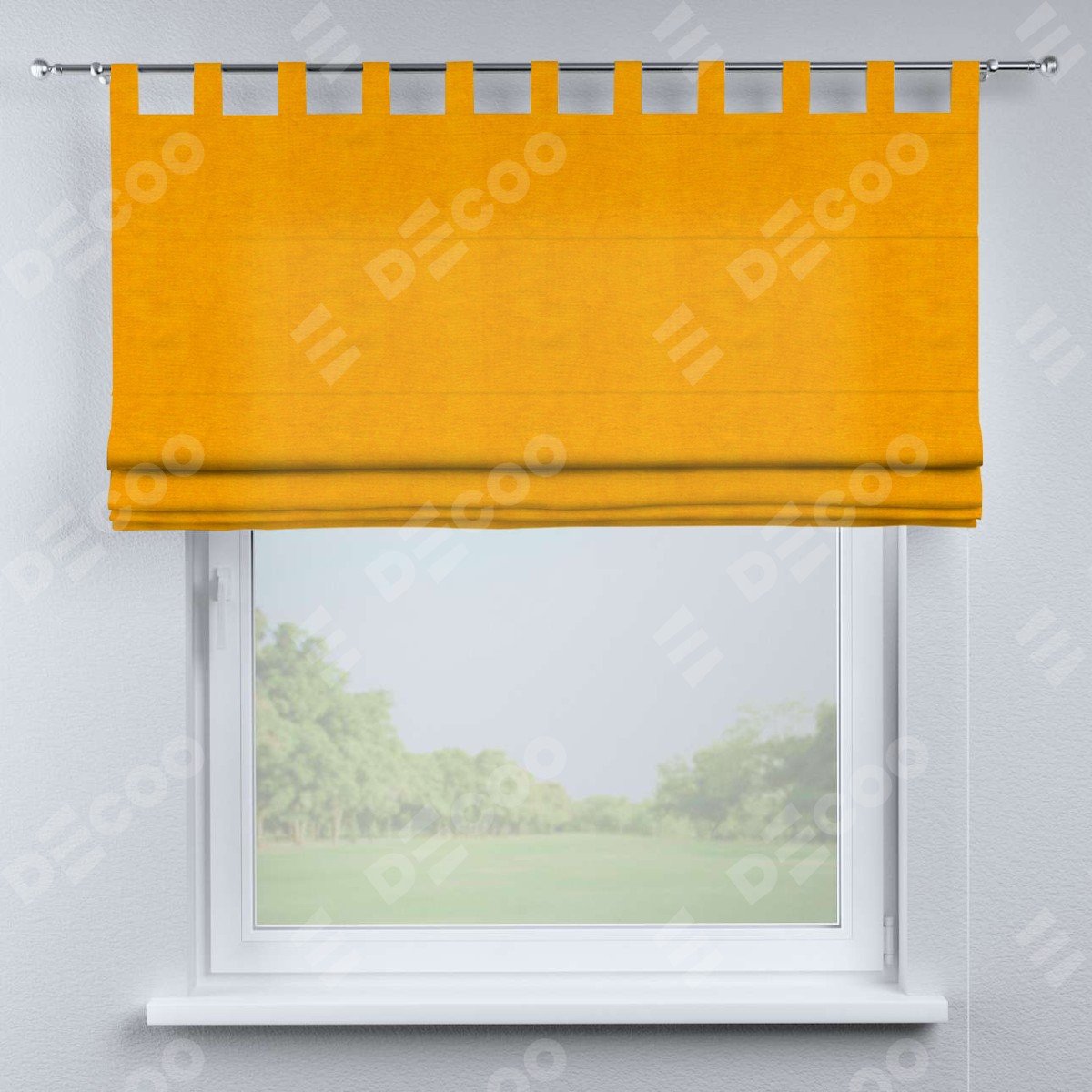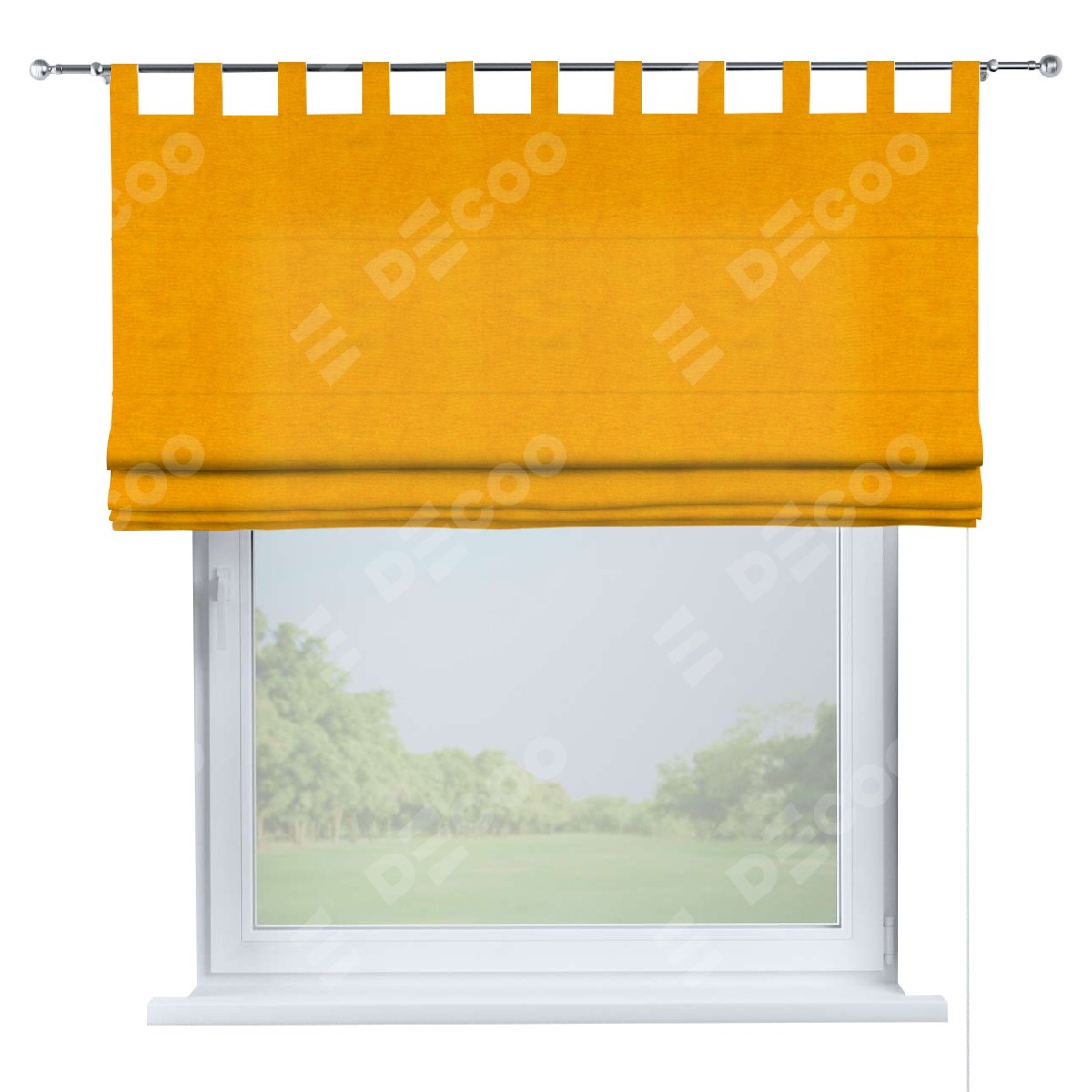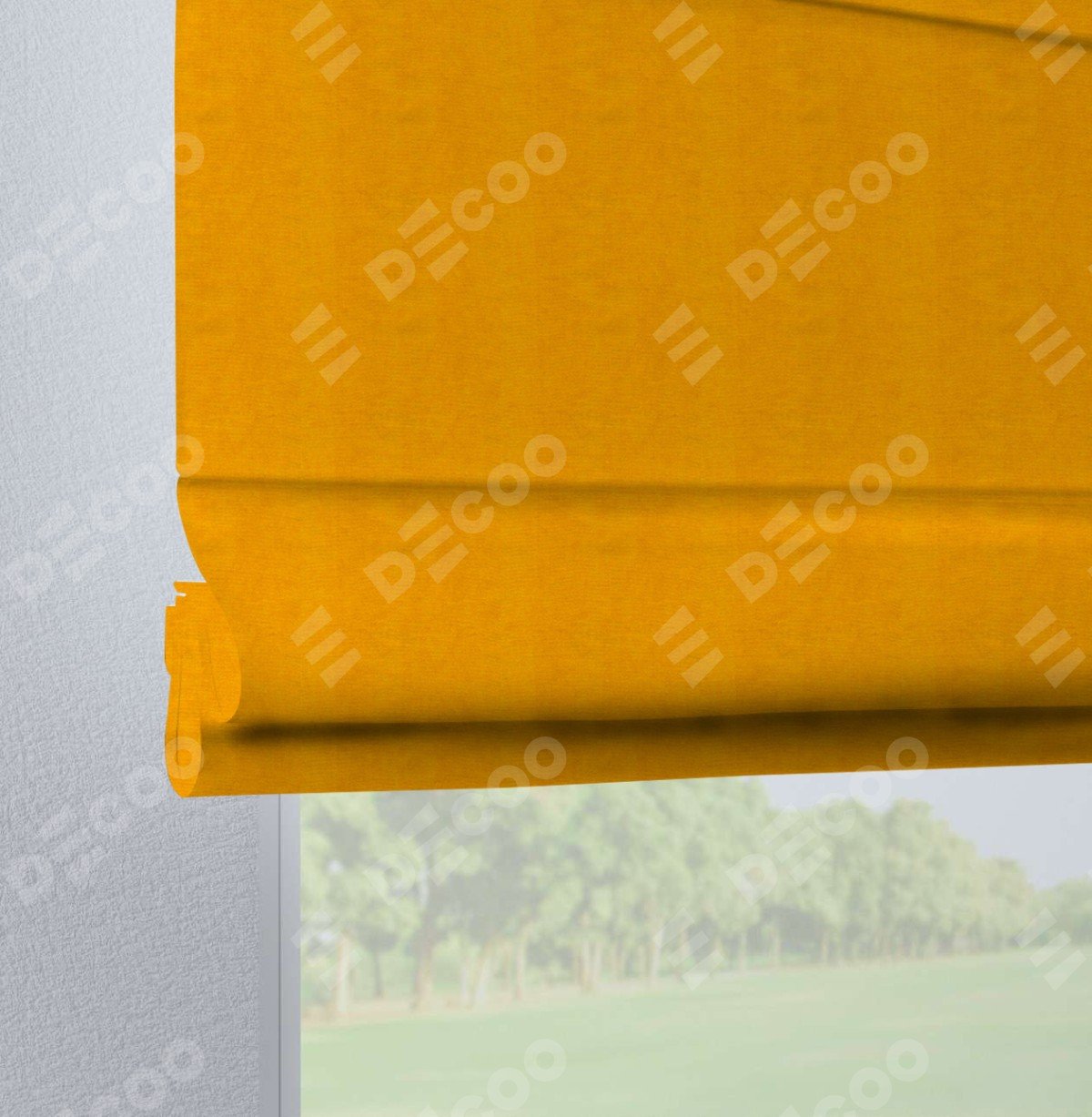 Римская штора производителя «Cortin», используется для проёма, пошита из ткани вельвет желтый, артикул ткани 85547. Данная модель пошита на петлях, комплектуется на выбор круглым карнизом и подходит для монтажа на стену. Римская штора на петлях имеет простую систему регулировки высоты, отличительным преимуществом данной модели является простой способ монтажа. Достаточно повесить ее на трубу и штора готова!