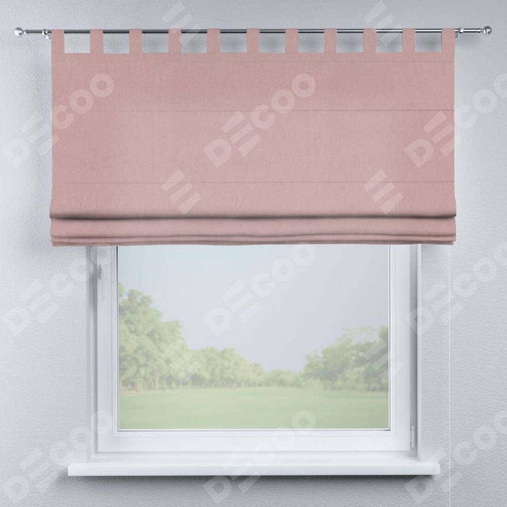 Римская штора производителя «Cortin», используется для проёма, пошита из ткани вельвет розовая пудра, артикул ткани 14132. Данная модель пошита на петлях, комплектуется на выбор круглым карнизом и подходит для монтажа на стену. Римская штора на петлях имеет простую систему регулировки высоты, отличительным преимуществом данной модели является простой способ монтажа. Достаточно повесить ее на трубу и штора готова!