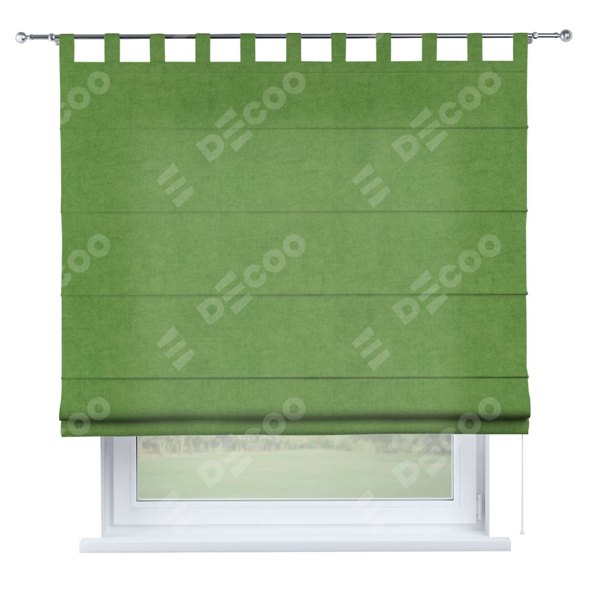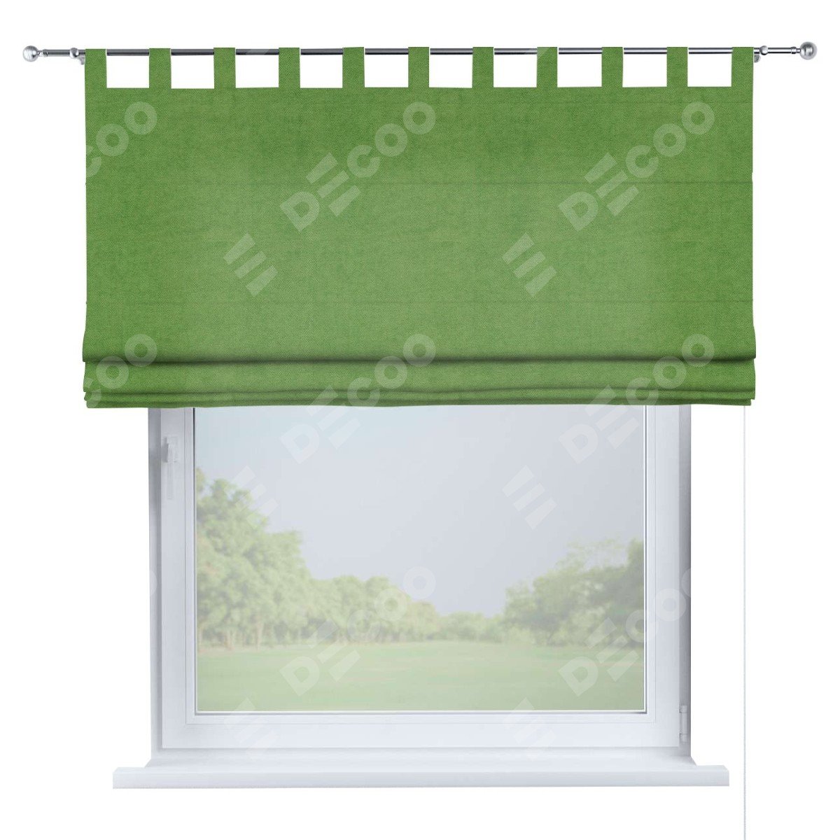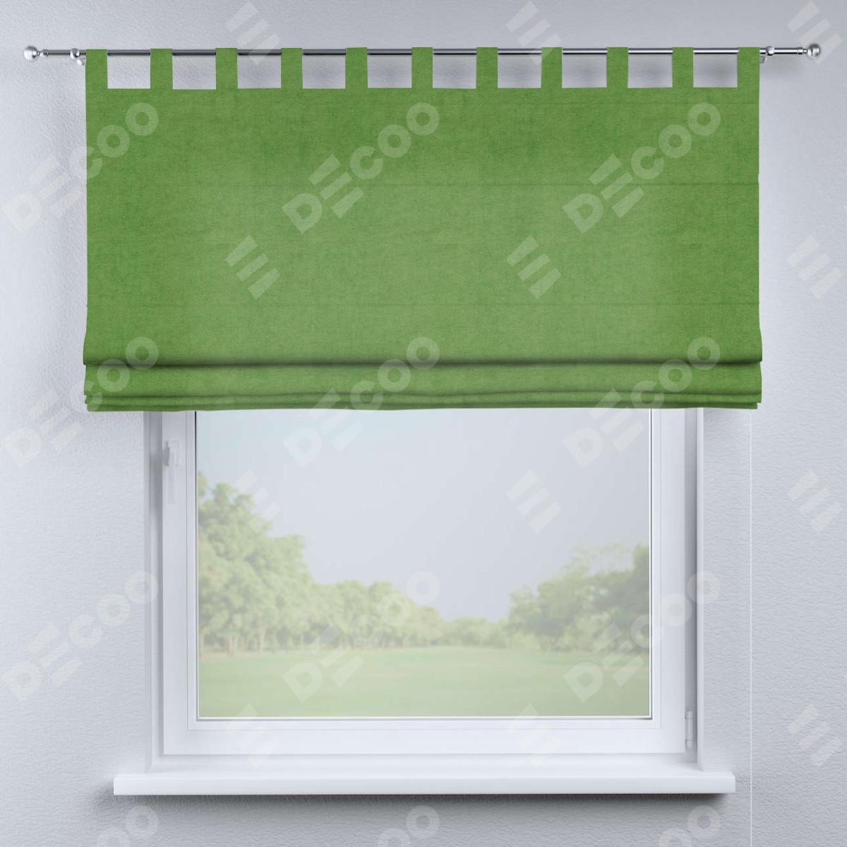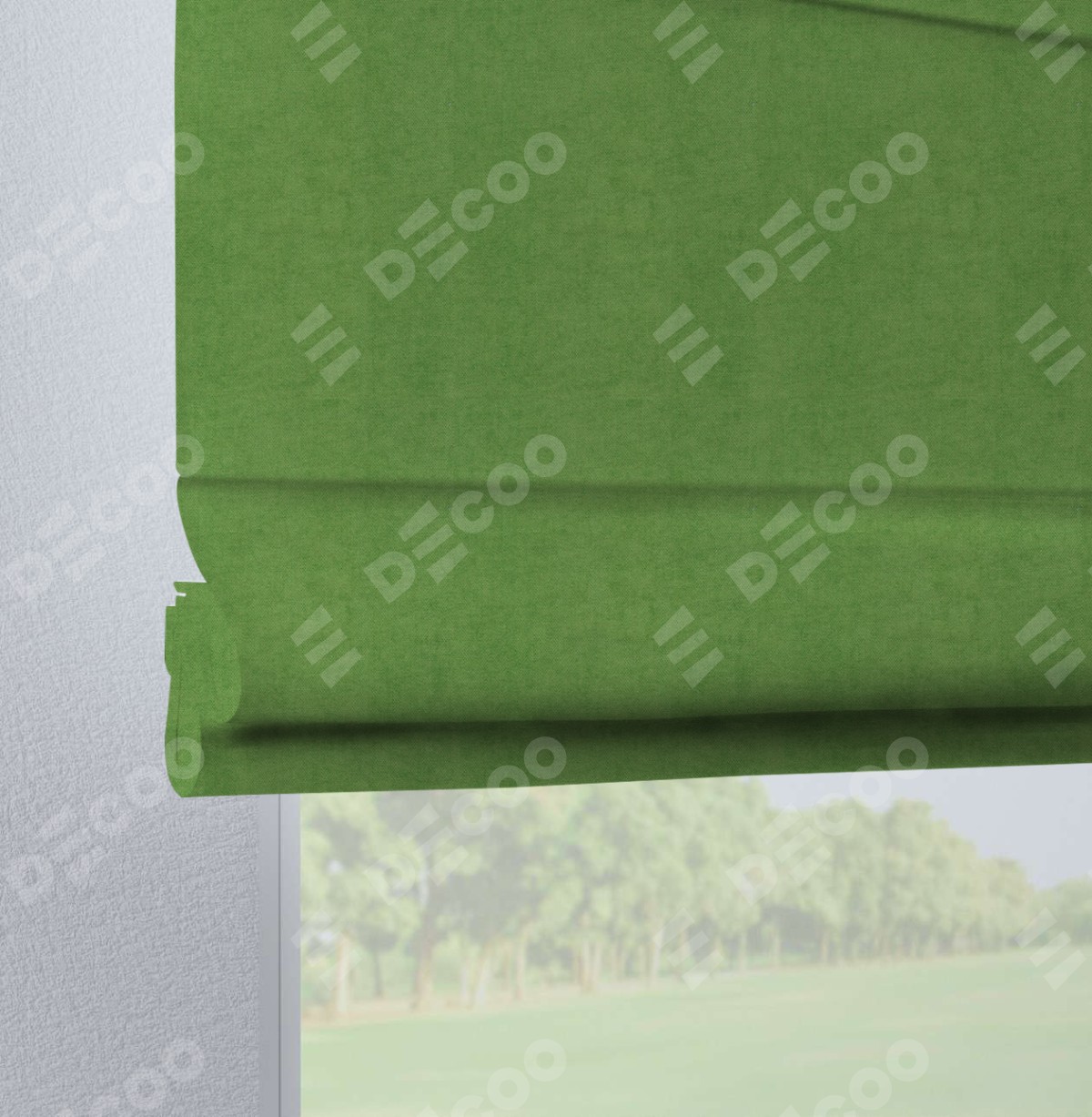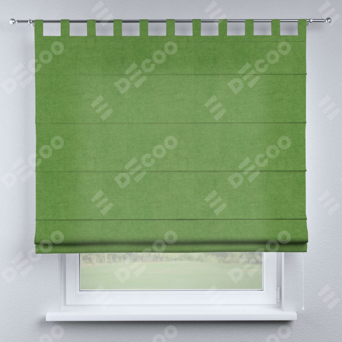 Римская штора производителя «Cortin», используется для проёма, пошита из ткани вельвет салатовый, артикул ткани 87072. Данная модель пошита на петлях, комплектуется на выбор круглым карнизом и подходит для монтажа на стену. Римская штора на петлях имеет простую систему регулировки высоты, отличительным преимуществом данной модели является простой способ монтажа. Достаточно повесить ее на трубу и штора готова!