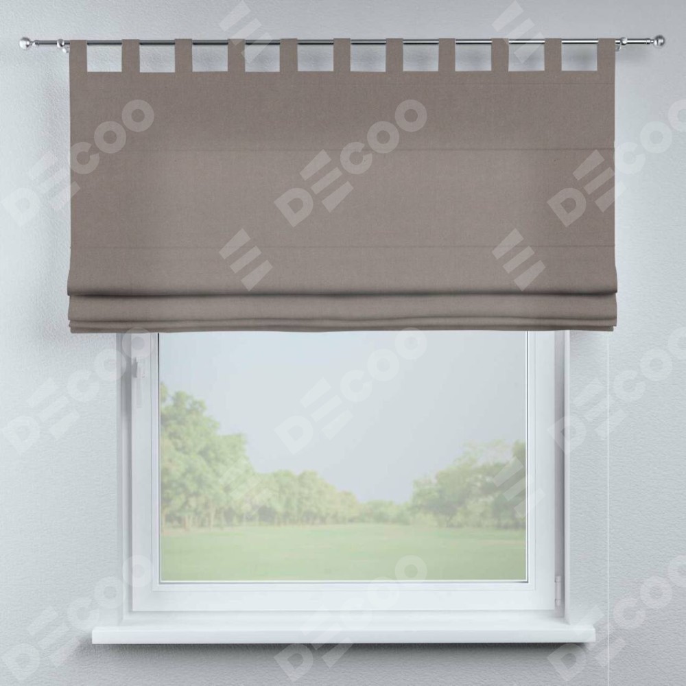Римская штора производителя «Cortin», используется для проёма, пошита из ткани вельвет тёмно-бежевый, артикул ткани 82527. Данная модель пошита на петлях, комплектуется на выбор круглым карнизом и подходит для монтажа на стену. Римская штора на петлях имеет простую систему регулировки высоты, отличительным преимуществом данной модели является простой способ монтажа. Достаточно повесить ее на трубу и штора готова!