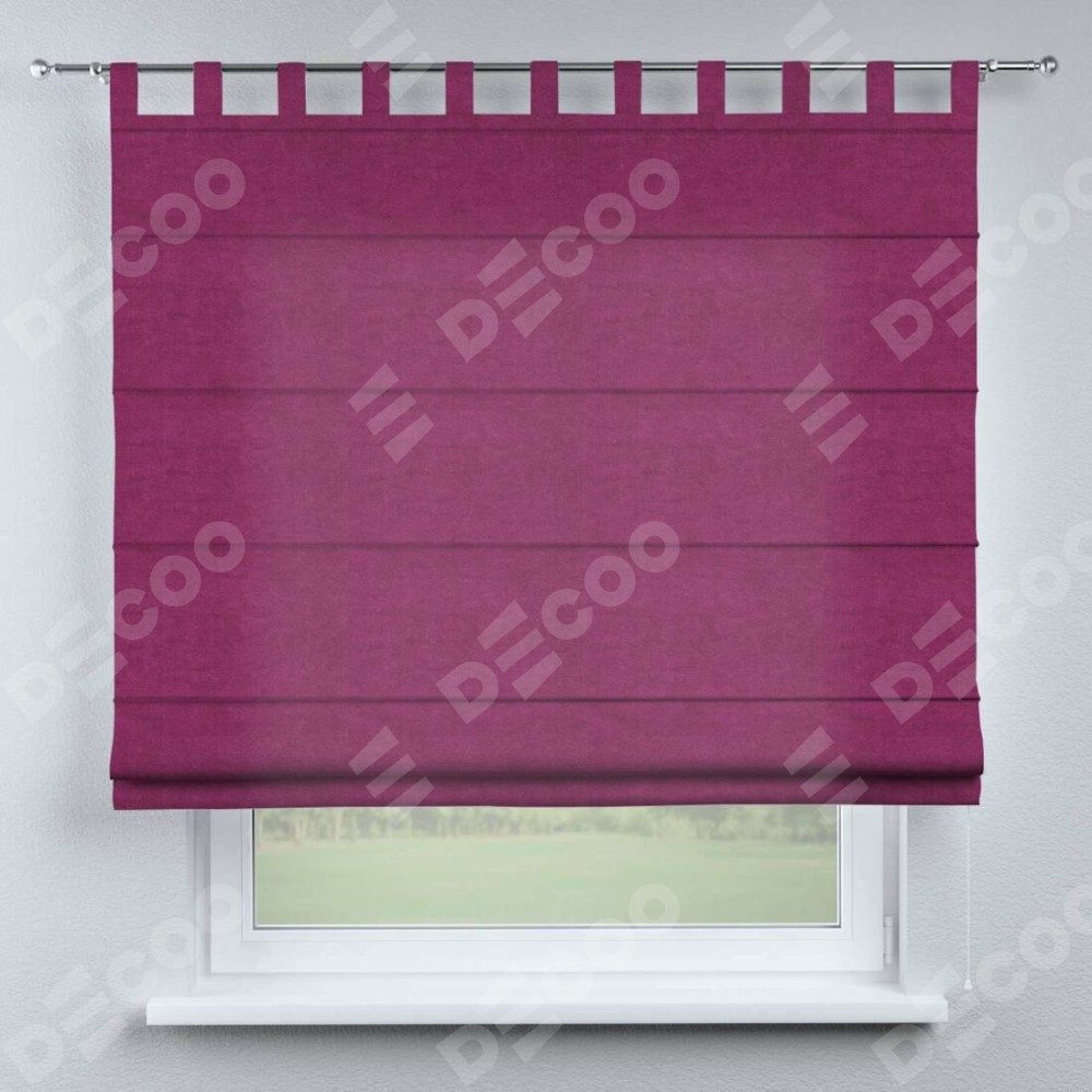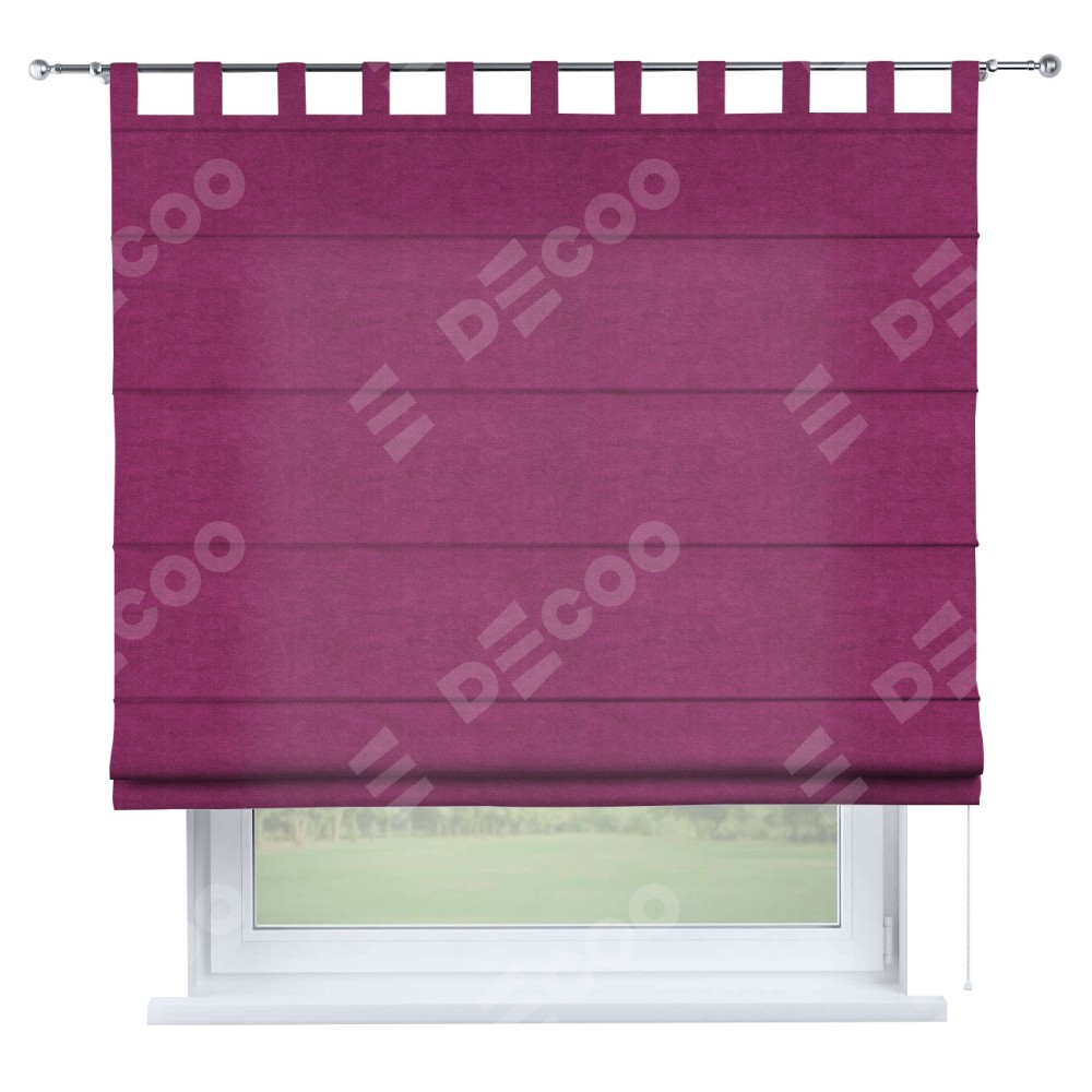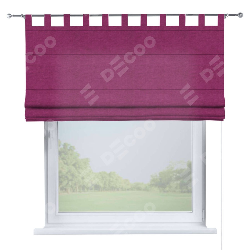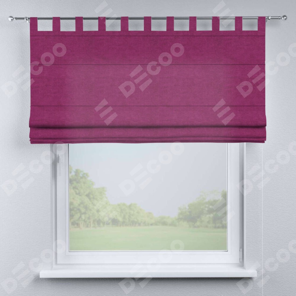 Римская штора производителя «Cortin», используется для проёма, пошита из ткани вельвет фиолетовый, артикул ткани 85552. Данная модель пошита на петлях, комплектуется на выбор круглым карнизом и подходит для монтажа на стену. Римская штора на петлях имеет простую систему регулировки высоты, отличительным преимуществом данной модели является простой способ монтажа. Достаточно повесить ее на трубу и штора готова!