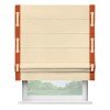 Римская штора производителя «Cortin», используется для проёма, пошита из ткани лён бежевый, артикул 53431. Отделка шторы кантом «Стрим Дуо» на кантах расположены люверсы с пояском, ткань для канта используется из льна разной расцветки на выбор. Ткань для пояска обычно используется из основной ткани шторы, а так же можно сделать из любой расцветки по желанию. Имеет универсальный механизм и подходит для монтажа: на потолок, на стену и в нишу.