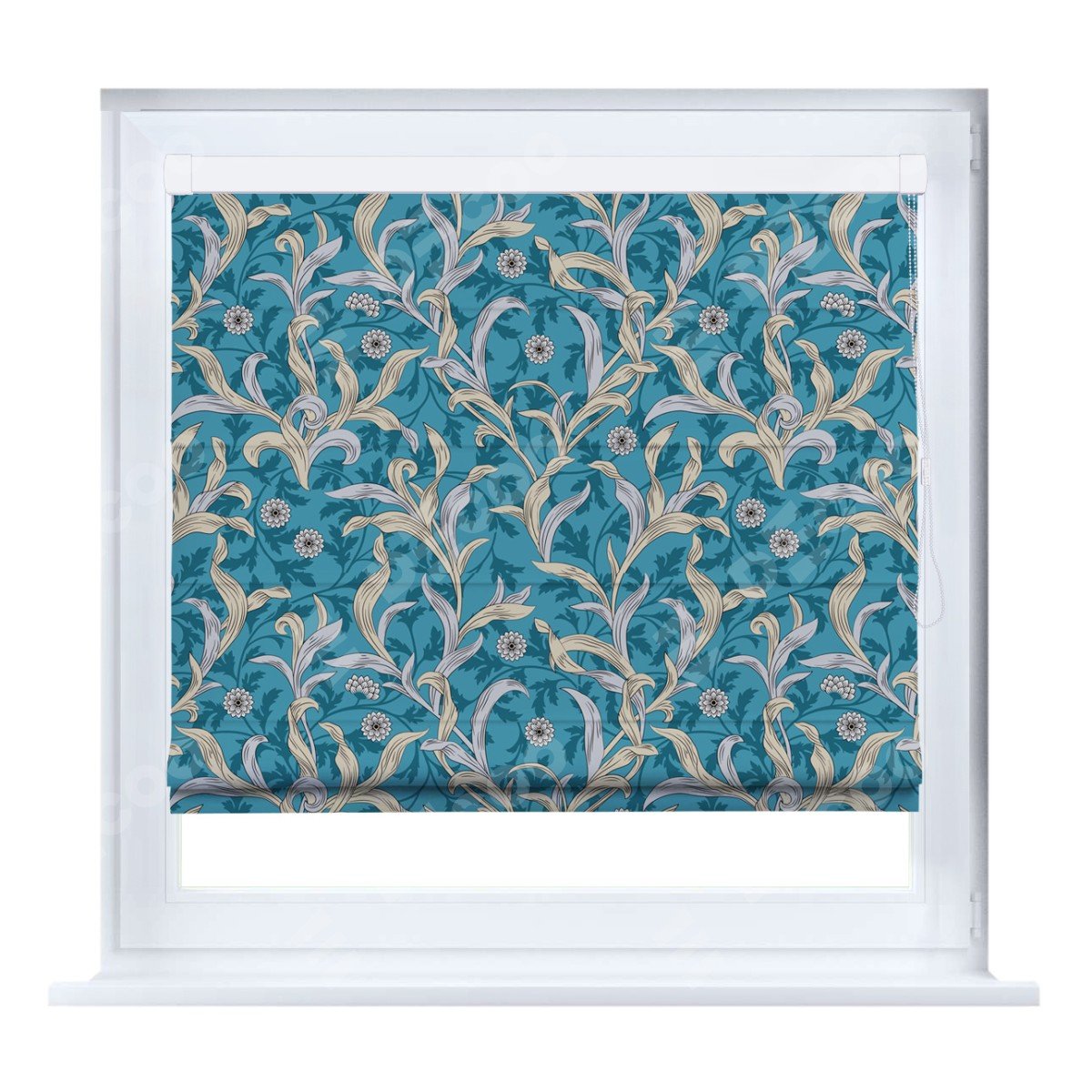 Римская штора кассетного типа, производителя «Cortin», устанавливается только на пластиковые окна и прилегает к стеклопакету, пошита из ткани блэкаут с нанесением сублимационной печати «Винтажные листья».