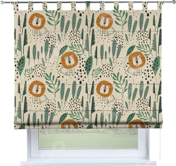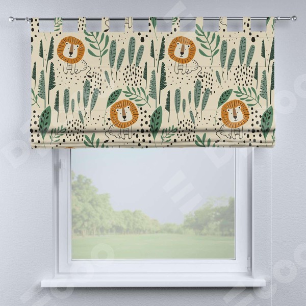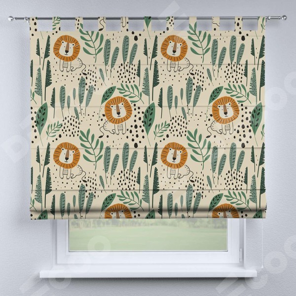 Римская штора производителя «Cortin», используется для проёма, пошита из ткани блэкаут с нанесением сублимационной печати «Лев из джунглей». Данная модель пошита на петлях, комплектуется на выбор круглым карнизом и подходит для монтажа на стену. Римская штора на петлях имеет простую систему регулировки высоты, отличительным преимуществом данной модели является простой способ монтажа. Достаточно повесить ее на трубу и штора готова!