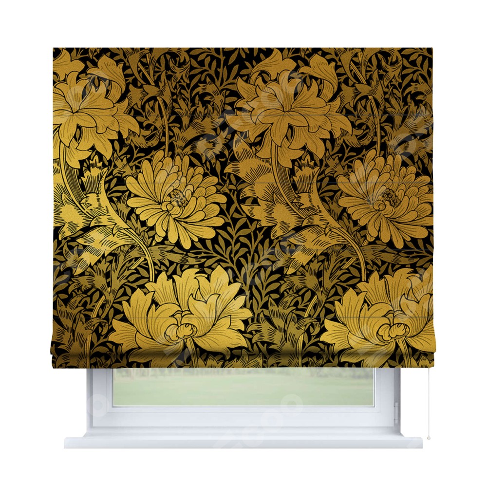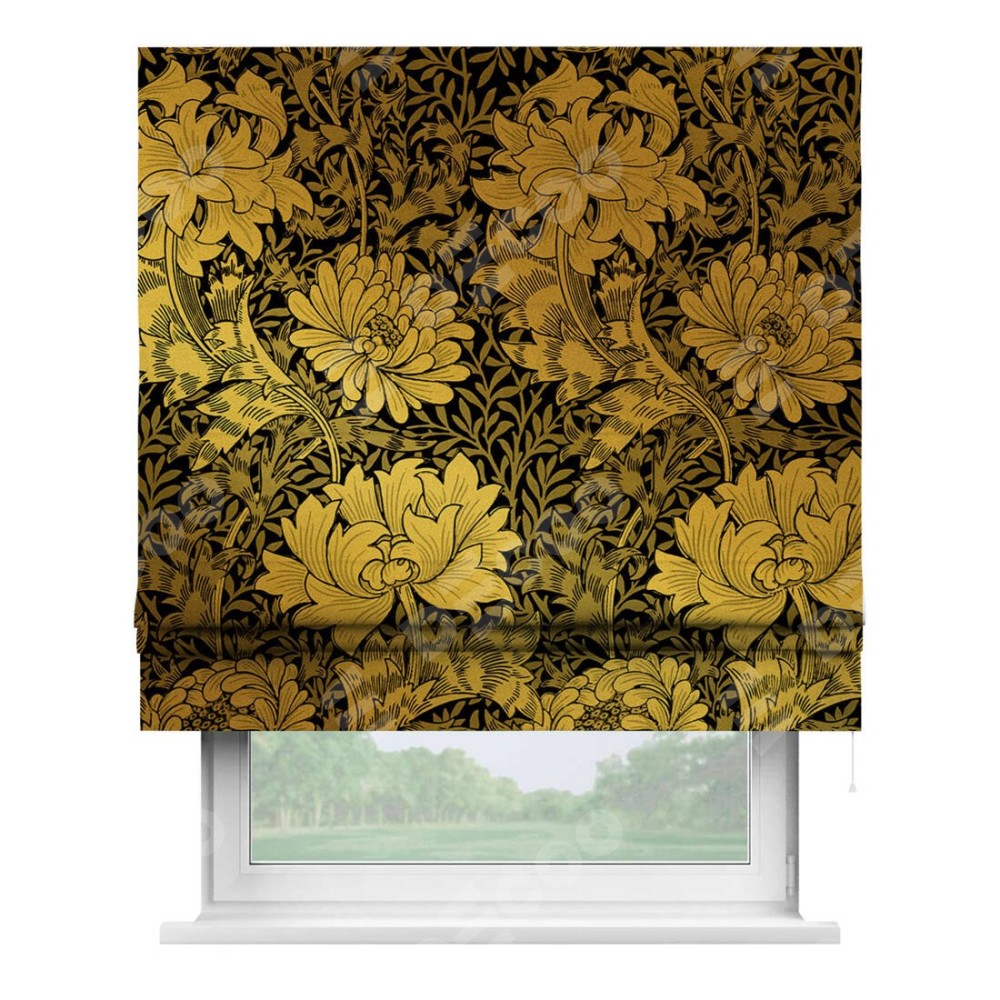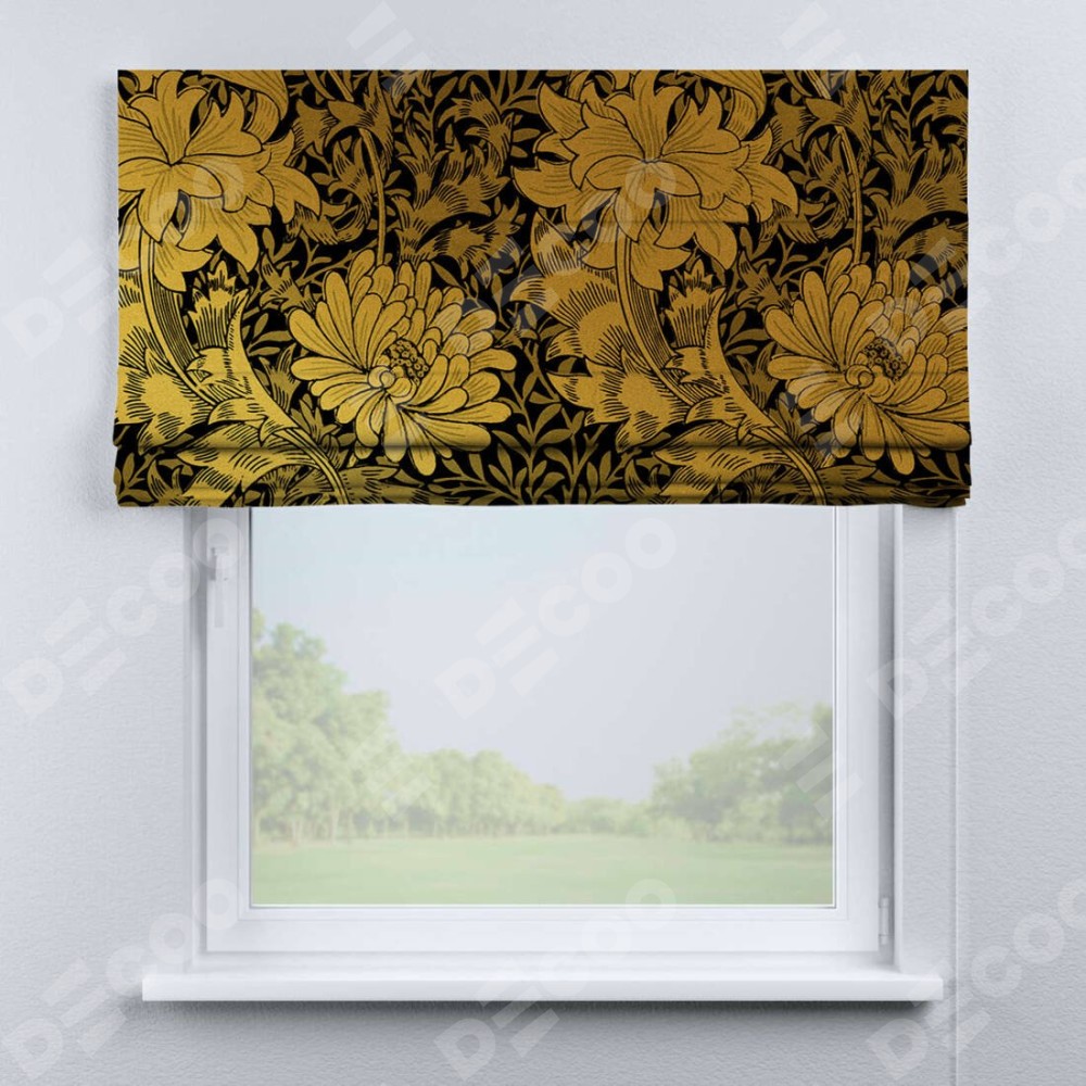 Римская штора производителя «Cortin», используется для проёма, пошита из ткани блэкаут с нанесением сублимационной печати «Ремикс морриса». Имеет универсальный механизм и подходит для монтажа: на потолок, на стену и в нишу.