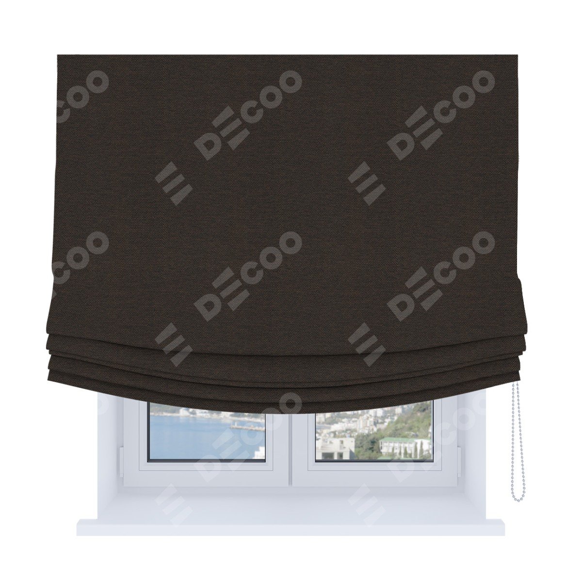 Римская штора Soft производителя «Cortin», используется для проёма, пошита из ткани лён димаут венге, артикул ткани 85410. Имеет универсальный механизм и подходит для монтажа: на потолок, на стену и в нишу. В отличие от стандартных римских штор, римская штора Soft не имеет горизонтальных вставок и нижнего отвеса. Это позволяет ткани произвольно драпироваться в свободные мягкие складки.