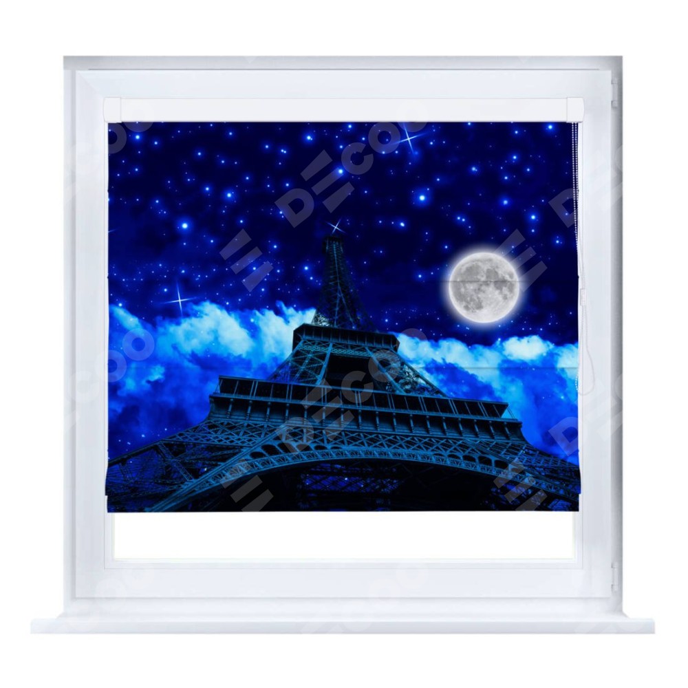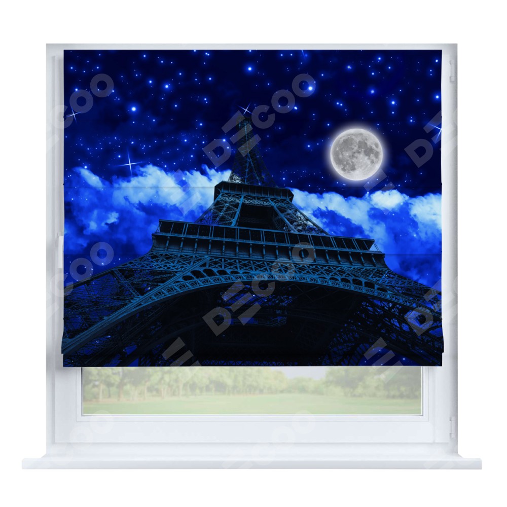 Римская штора производителя «Cortin», устанавливается на створку окна, пошита из ткани блэкаут с нанесением сублимационной печати «Ночь в Париже». Штора шьётся по индивидуальным размерам, для данного типа римской шторы возможная ширина от 35 до 150 см., высота до 250 см.