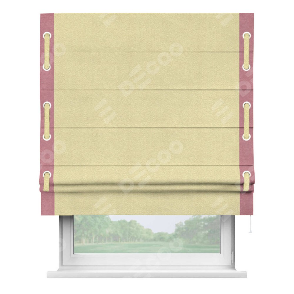 Римская штора «Кортин» с кантом Стрим Дуо (люверсы с пояском), для проема, ткань софт однотонный молочный