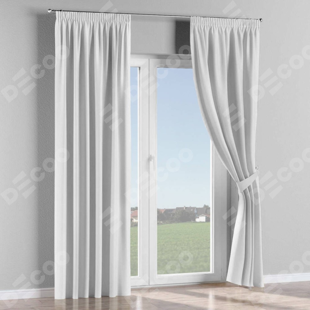 Комплект прямых штор, от производителя «Cortin», пошиты из ткани лён белоснежный, артикул ткани 7438. С изнаночной стороны в верхней части штор пристрачивается шторная лента с декоративными складками «Карандаш». Для создания элегантных складок прямые шторы шьются по стандарту с коэффициентом 1:2 (на 100 см. ширины проёма 200 см. ширины ткани).
