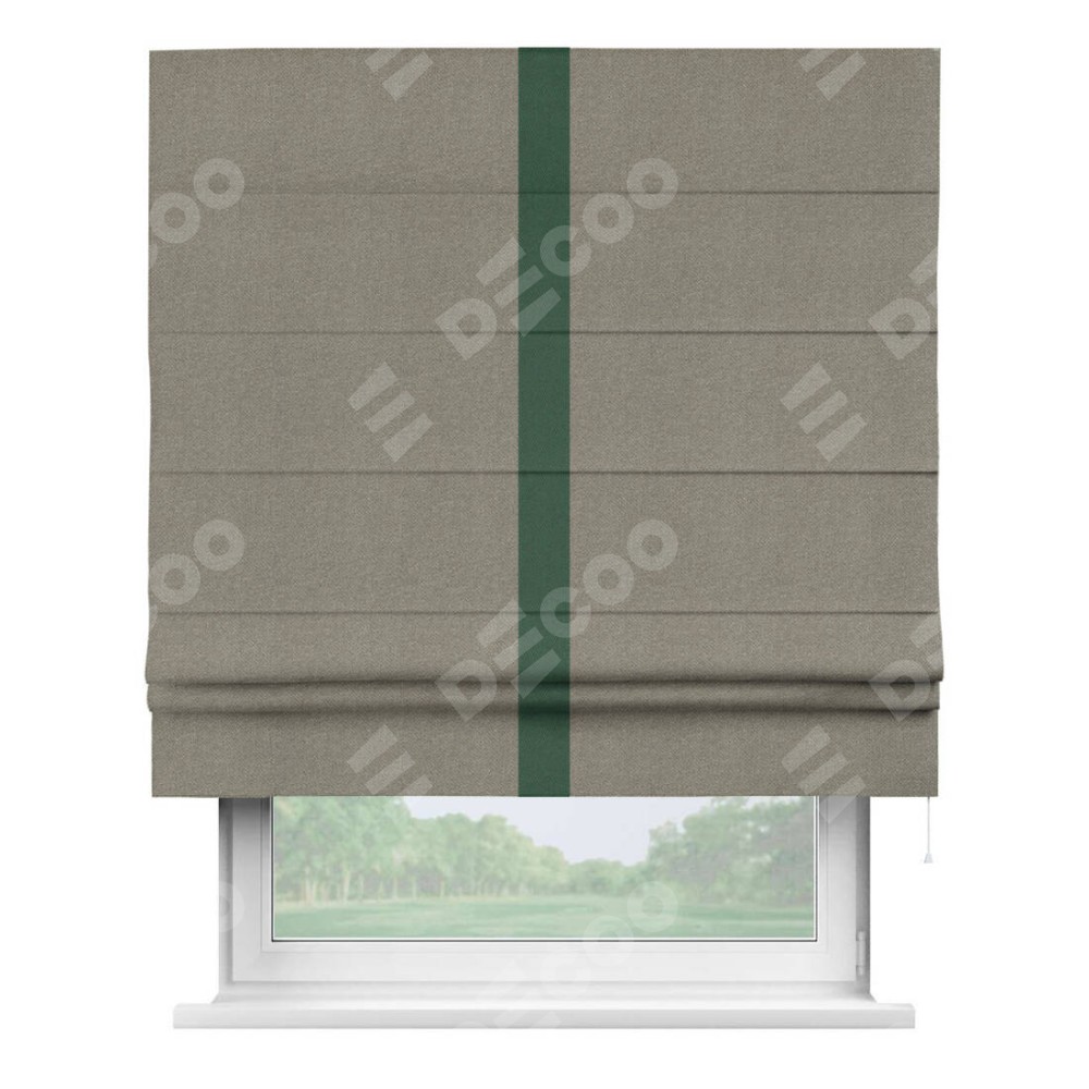 Римская штора «Кортин» с кантом Хайвэй, для проема, ткань лён димаут, серо-зелёный