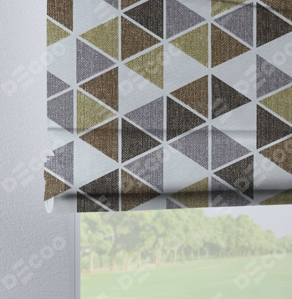 Римская штора на петлях «Кортин», ткань димаут «Треугольники коричневые»