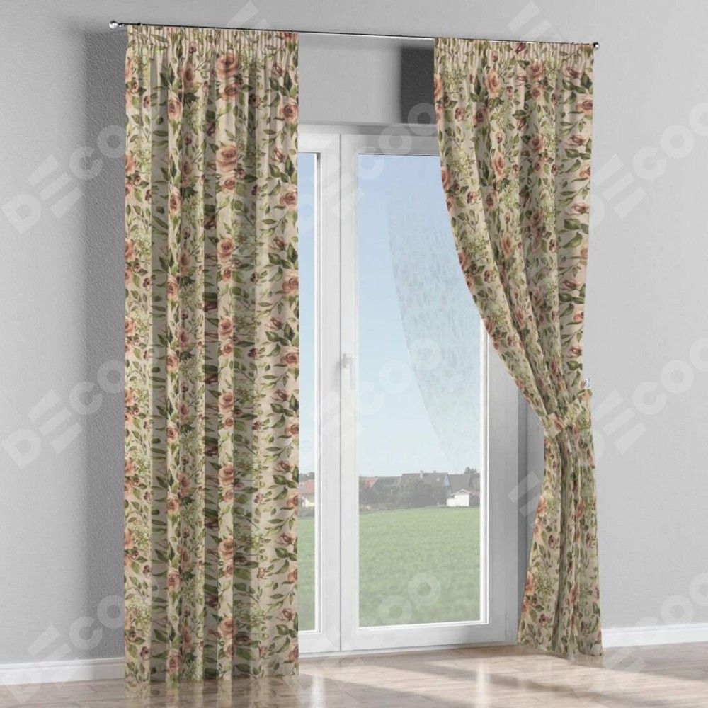 Комплект штор на тесьме «Карандаш», ткань «Розы бежевые»