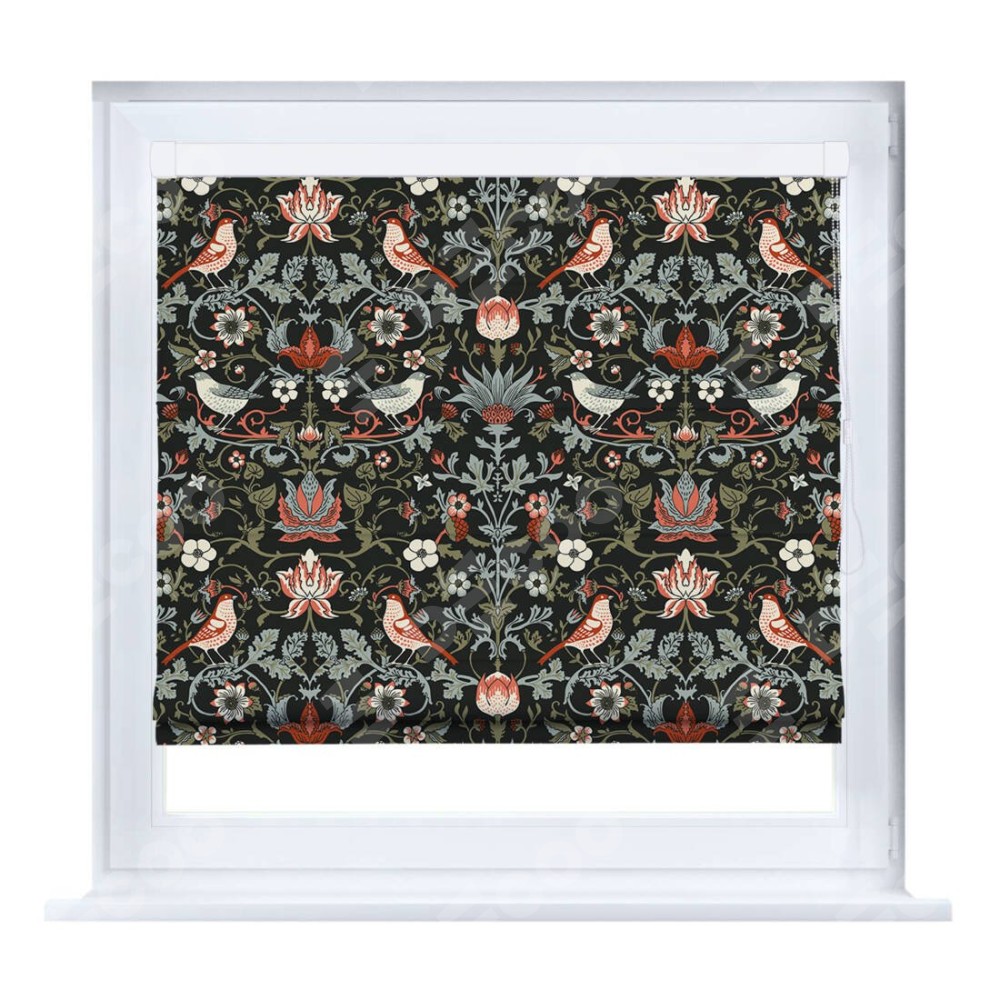 Римская штора производителя «Cortin», устанавливается на створку окна, пошита из ткани блэкаут с нанесением сублимационной печати «Зачарованные птицы». Штора шьётся по индивидуальным размерам, для данного типа римской шторы возможная ширина от 35 до 150 см., высота до 250 см.