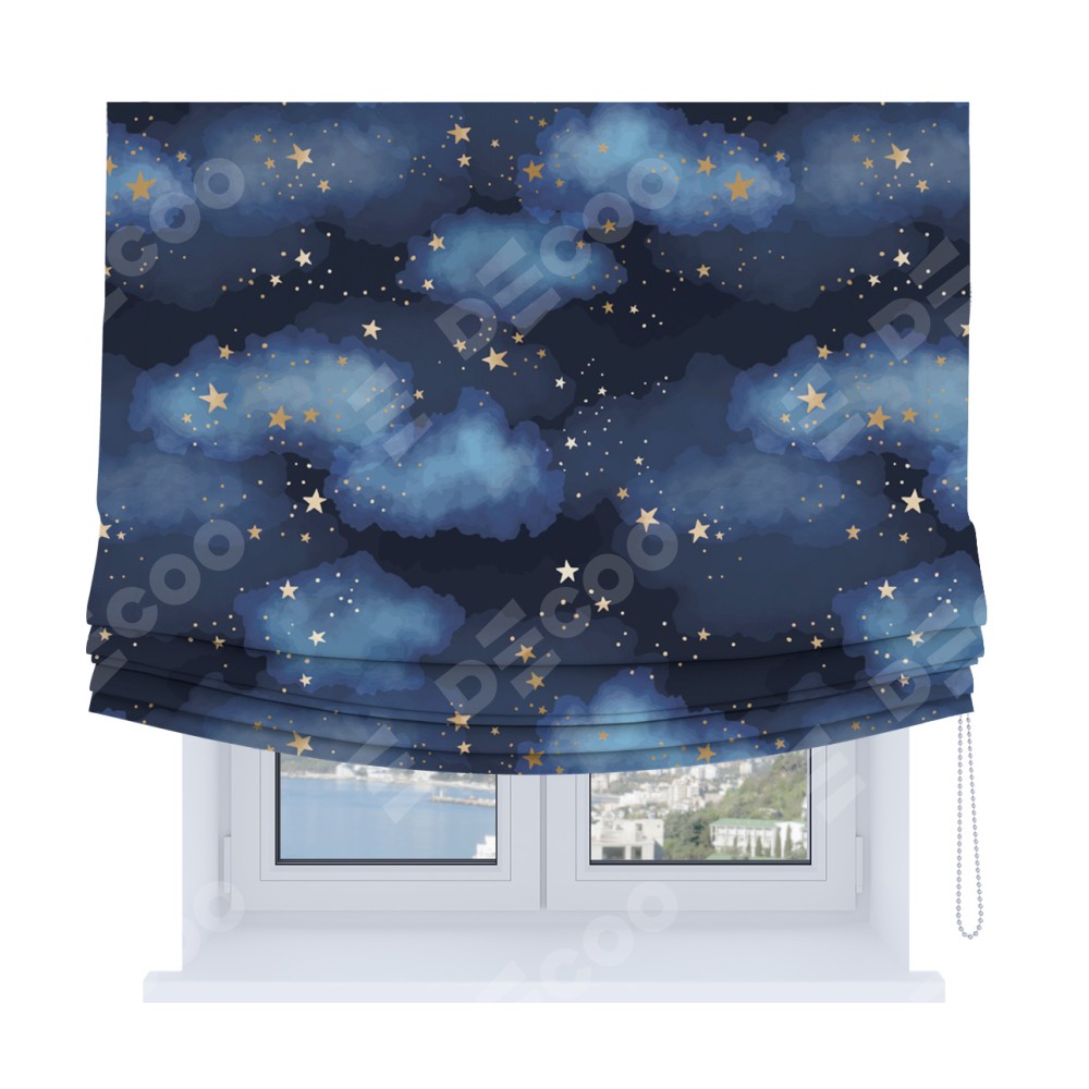 Римская штора Soft с мягкими складками, «Золотые звёзды»