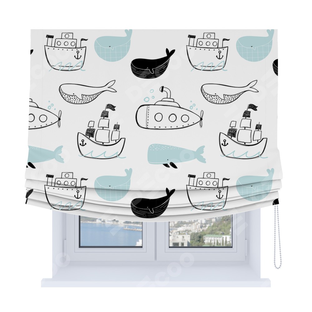 Римская штора Soft с мягкими складками, «Морская прогулка»