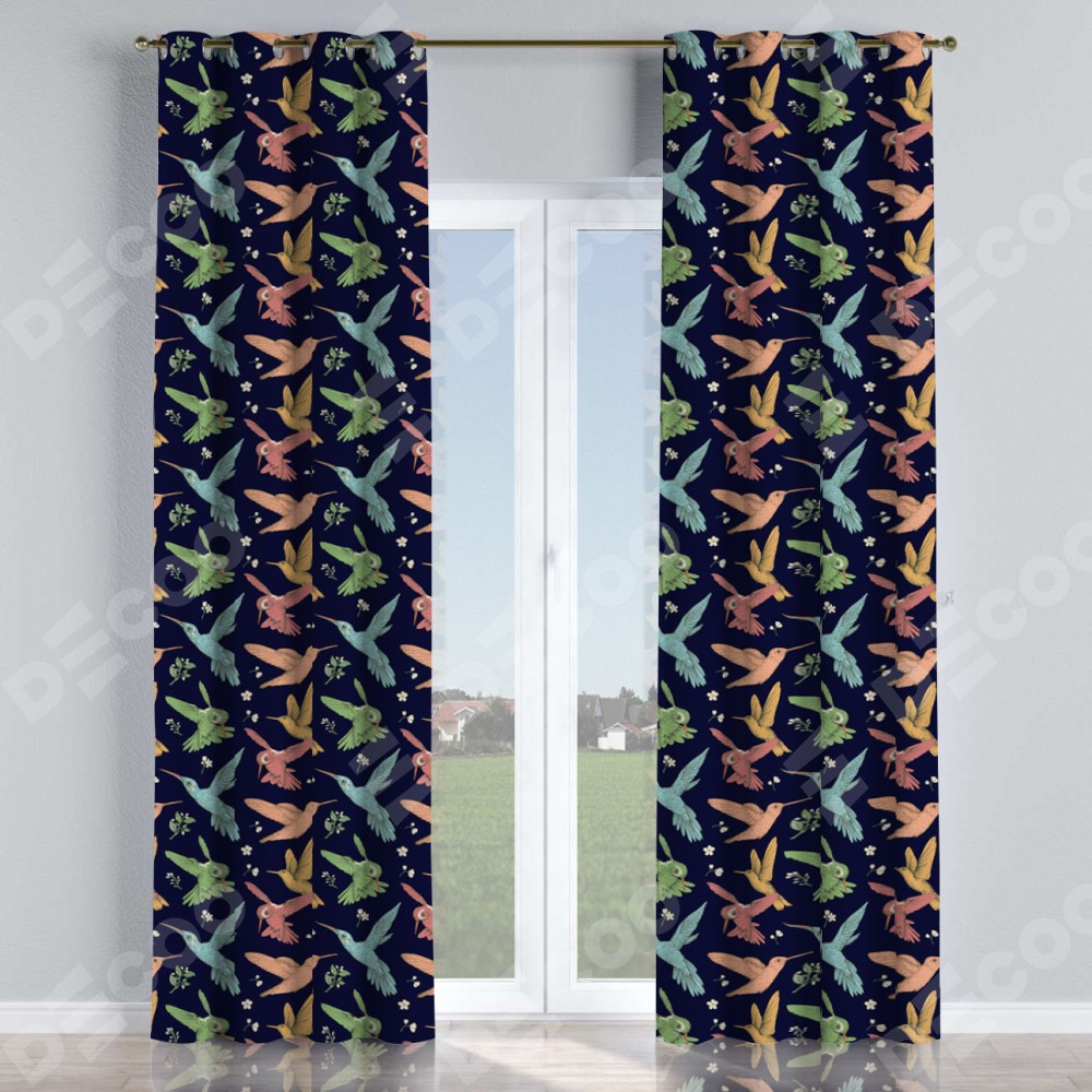 Комплект прямых штор, от производителя «Cortin», пошиты из ткани блэкаут с нанесением сублимационной печати «Птицы и цветы». Данная модель пошита на люверсах, комплектуется на выбор круглым карнизом и подходит для монтажа на стену или потолок. Прямые шторы на люверсах шьются по стандарту с коэффициентом 1/2 (на 100 см. ширины проёма 200 см. ширины ткани), отличительным преимуществом данной модели является простой способ монтажа. Достаточно повесить ее на трубу и штора готова!
