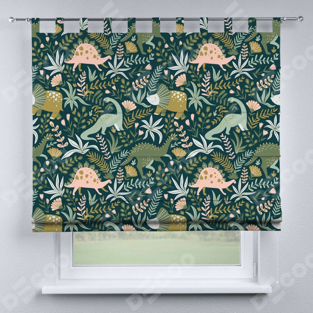 Римская штора производителя «Cortin», используется для проёма, пошита из ткани блэкаут с нанесением сублимационной печати «Удивительный дино». Данная модель пошита на петлях, комплектуется на выбор круглым карнизом и подходит для монтажа на стену. Римская штора на петлях имеет простую систему регулировки высоты, отличительным преимуществом данной модели является простой способ монтажа. Достаточно повесить ее на трубу и штора готова!