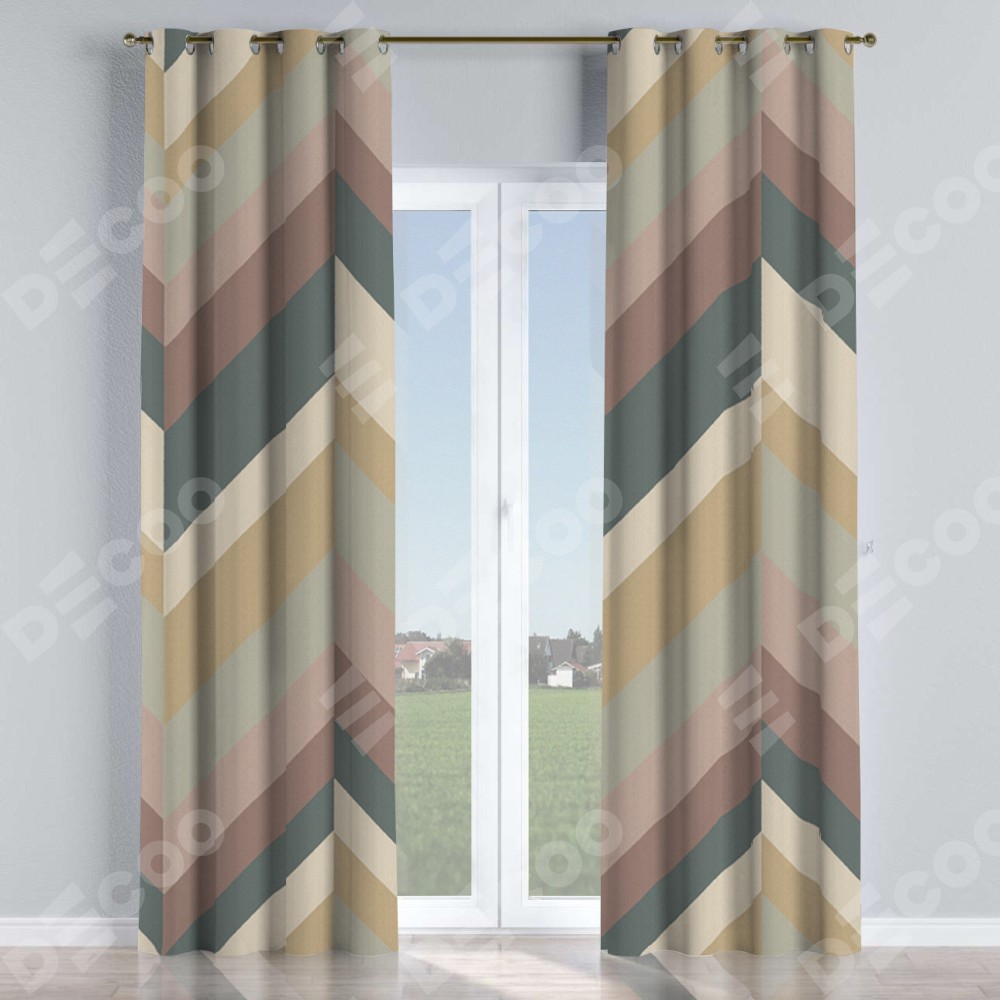 Комплект прямых штор, от производителя «Cortin», пошиты из ткани блэкаут с нанесением сублимационной печати «Шеврон Авеню». Данная модель пошита на люверсах, комплектуется на выбор круглым карнизом и подходит для монтажа на стену или потолок. Прямые шторы на люверсах шьются по стандарту с коэффициентом 1/2 (на 100 см. ширины проёма 200 см. ширины ткани), отличительным преимуществом данной модели является простой способ монтажа. Достаточно повесить ее на трубу и штора готова!