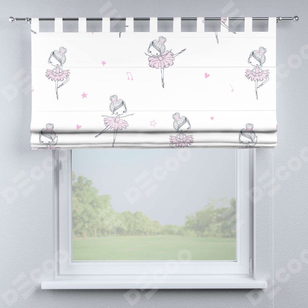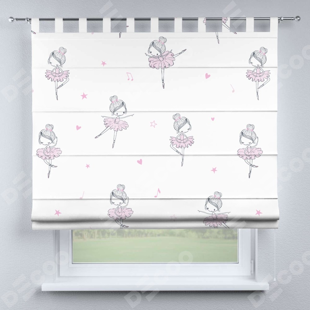 Римская штора производителя «Cortin», используется для проёма, пошита из ткани блэкаут с нанесением сублимационной печати «Маленькая балерина». Данная модель пошита на петлях, комплектуется на выбор круглым карнизом и подходит для монтажа на стену. Римская штора на петлях имеет простую систему регулировки высоты, отличительным преимуществом данной модели является простой способ монтажа. Достаточно повесить ее на трубу и штора готова!