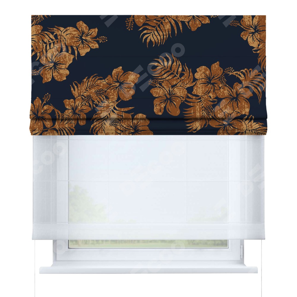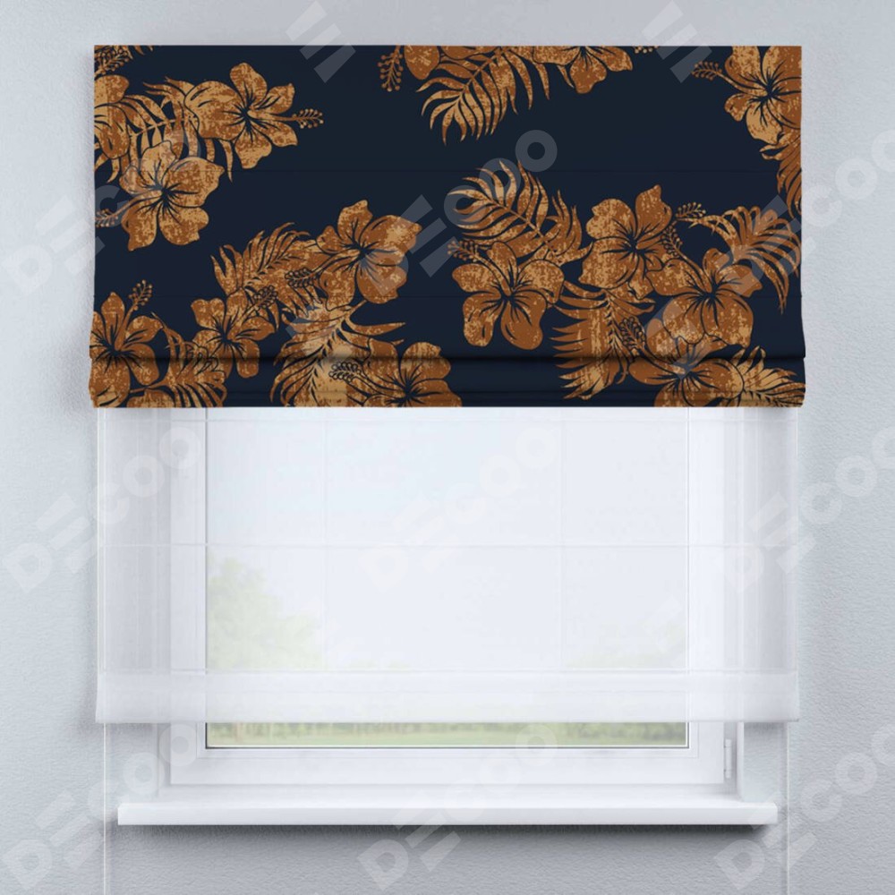 Римская штора день-ночь производителя «Cortin», используется для проёма, пошита из двух полотен, с лицевой блэкаут с нанесением сублимационной печати «Китайская роза», вторая ткань тюль (по стандарту комплектуется тюль белого цвета артикул V-01). Имеет универсальный механизм и подходит для монтажа: на потолок, на стену и в нишу.