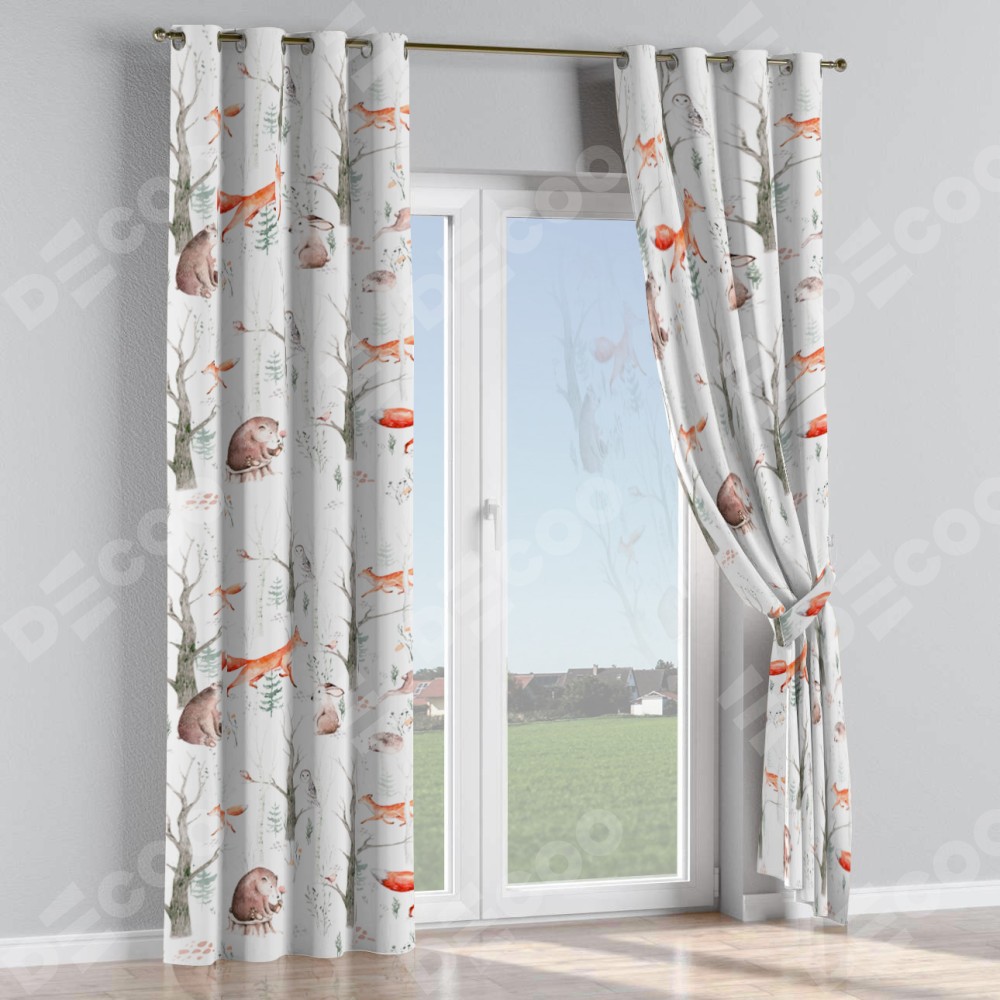 Комплект прямых штор, от производителя «Cortin», пошиты из ткани блэкаут с нанесением сублимационной печати «Лесной питомник». Данная модель пошита на люверсах, комплектуется на выбор круглым карнизом и подходит для монтажа на стену или потолок. Прямые шторы на люверсах шьются по стандарту с коэффициентом 1/2 (на 100 см. ширины проёма 200 см. ширины ткани), отличительным преимуществом данной модели является простой способ монтажа. Достаточно повесить ее на трубу и штора готова!