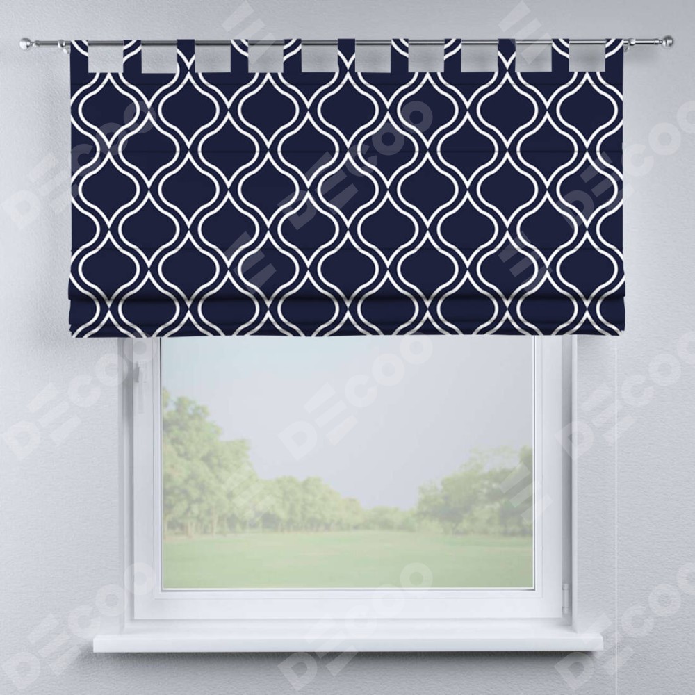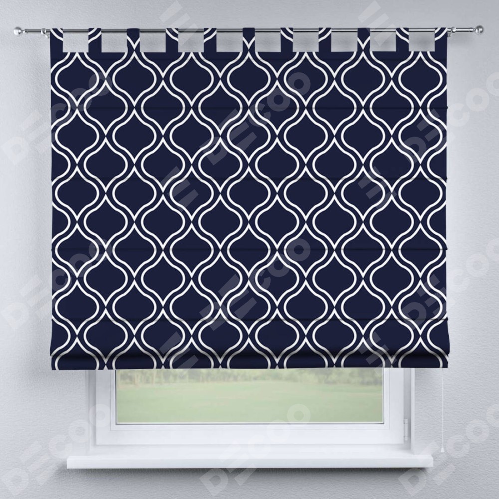 Римская штора производителя «Cortin», используется для проёма, пошита из ткани блэкаут с нанесением сублимационной печати «Тайны востока синий». Данная модель пошита на петлях, комплектуется на выбор круглым карнизом и подходит для монтажа на стену. Римская штора на петлях имеет простую систему регулировки высоты, отличительным преимуществом данной модели является простой способ монтажа. Достаточно повесить ее на трубу и штора готова!