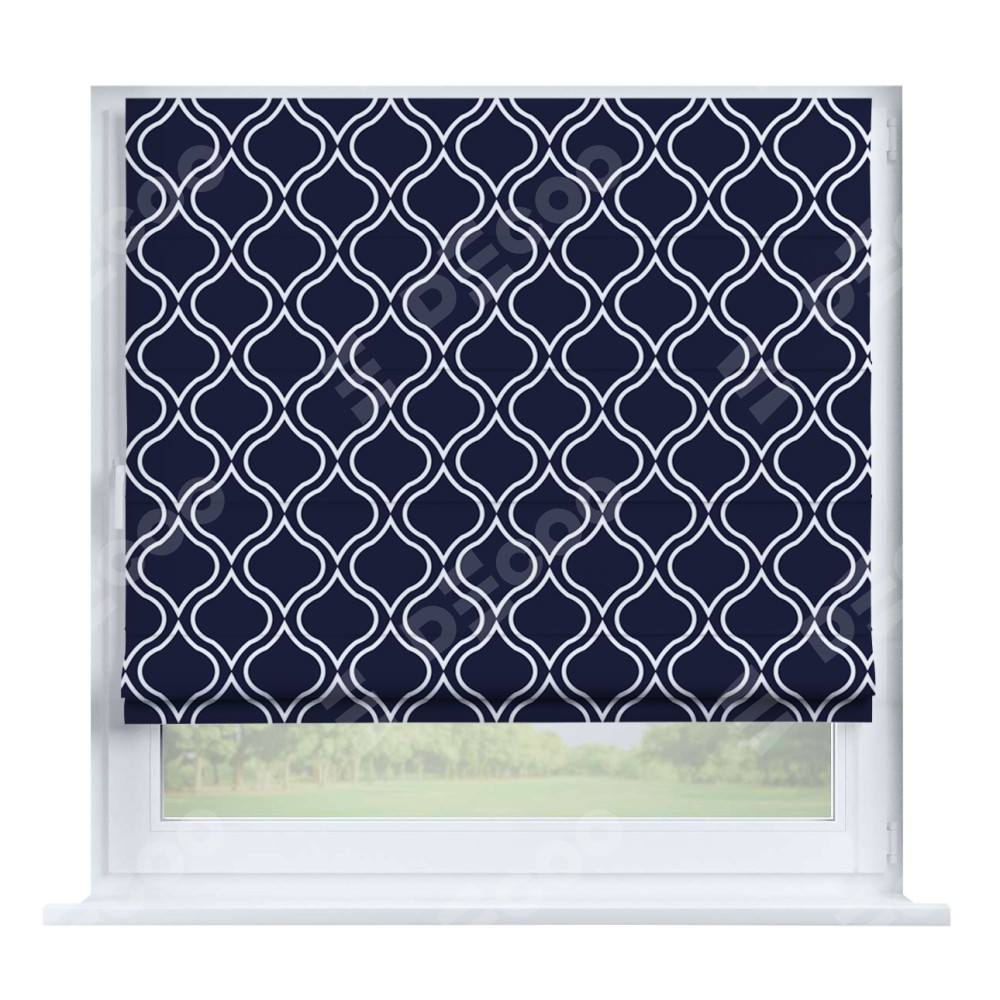 Римская штора производителя «Cortin», устанавливается на створку окна, пошита из ткани блэкаут с нанесением сублимационной печати «Тайны востока синий». Штора шьётся по индивидуальным размерам, для данного типа римской шторы возможная ширина от 35 до 150 см., высота до 250 см.