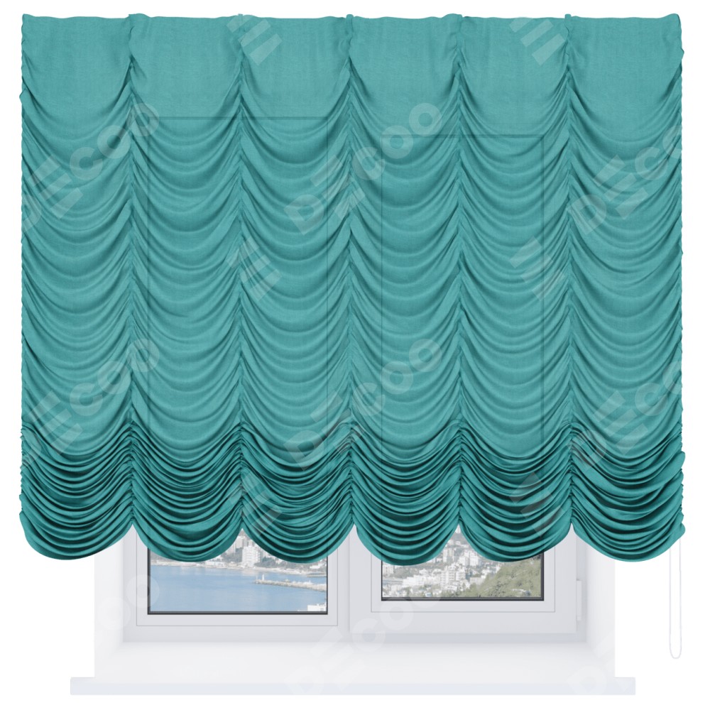 Французская штора производителя «Cortin», используется для проёма, пошита из ткани лён изумрудный, артикул ткани 85908. Имеет универсальный механизм и подходит для монтажа: на потолок и на стену.