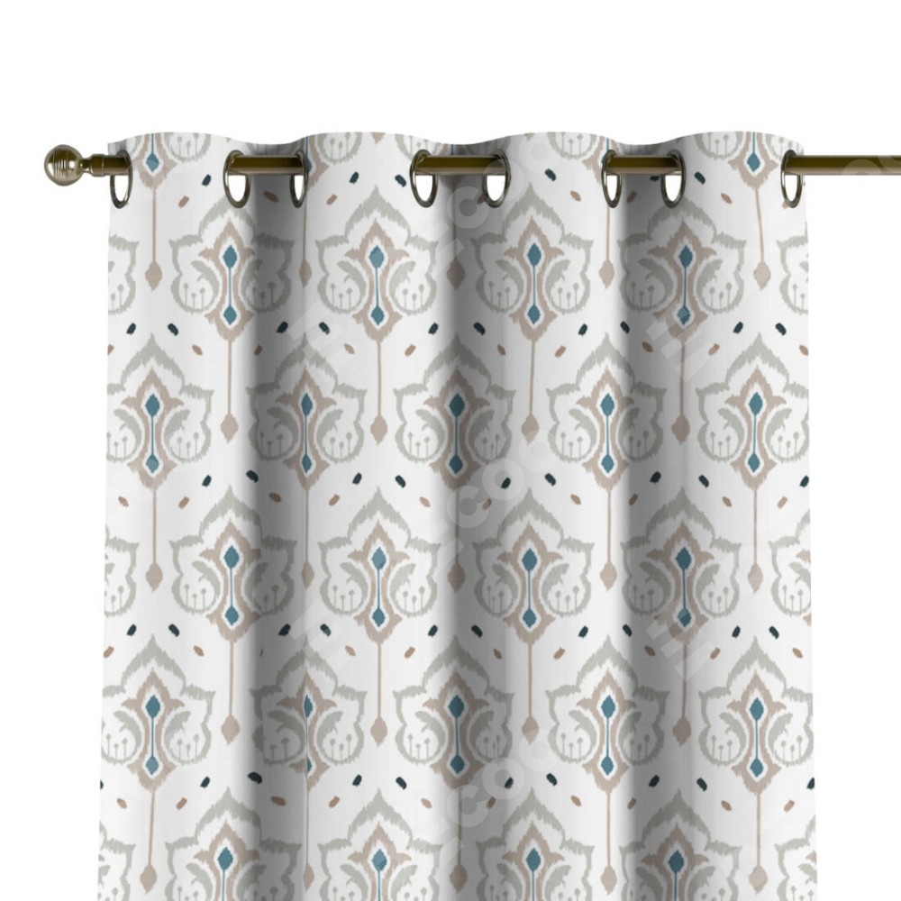 Комплект прямых штор, от производителя «Cortin», пошиты из ткани блэкаут с нанесением сублимационной печати «Икат узор». Данная модель пошита на люверсах, комплектуется на выбор круглым карнизом и подходит для монтажа на стену или потолок. Прямые шторы на люверсах шьются по стандарту с коэффициентом 1/2 (на 100 см. ширины проёма 200 см. ширины ткани), отличительным преимуществом данной модели является простой способ монтажа. Достаточно повесить ее на трубу и штора готова!