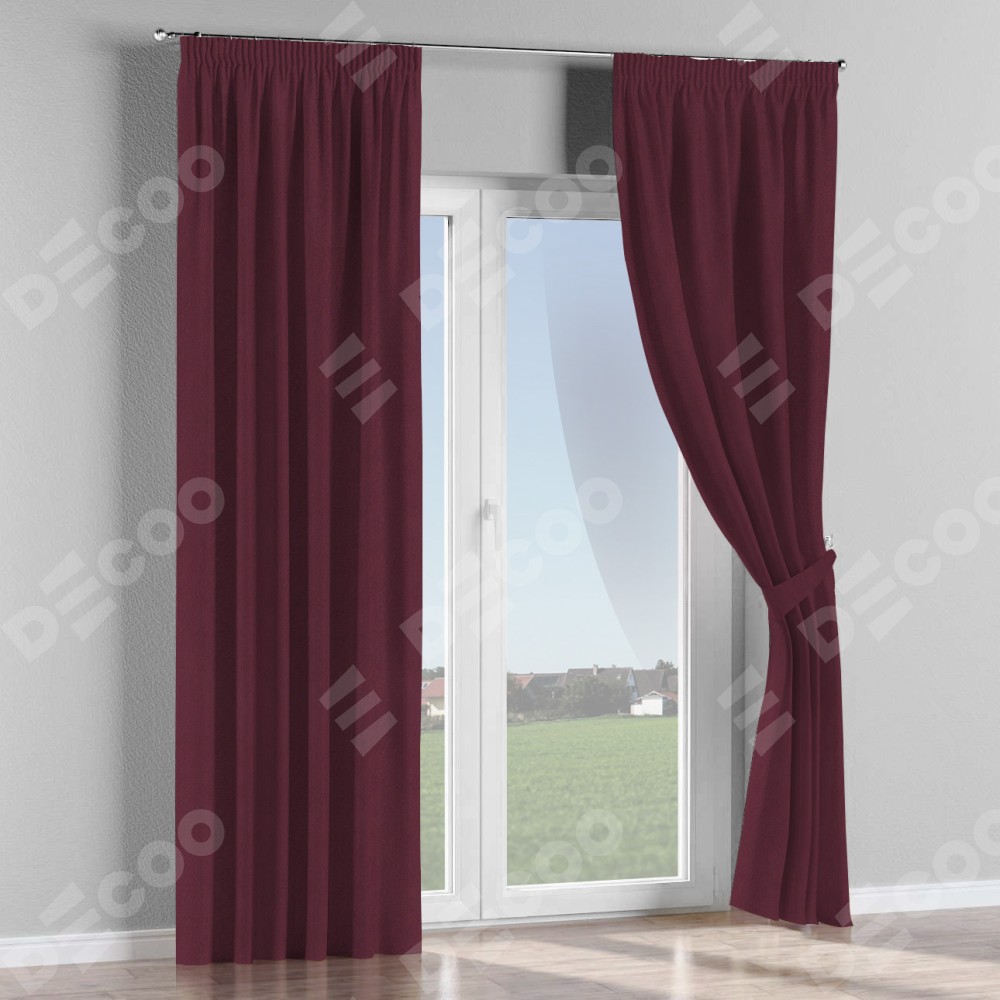 Комплект прямых штор, от производителя «Cortin», пошиты из ткани блэкаут однотонный сиреневый, артикул ткани 29333−2. С изнаночной стороны в верхней части штор пристрачивается шторная лента с декоративными складками «Карандаш». Для создания элегантных складок прямые шторы шьются по стандарту с коэффициентом 1:2 (на 100 см. ширины проёма 200 см. ширины ткани).