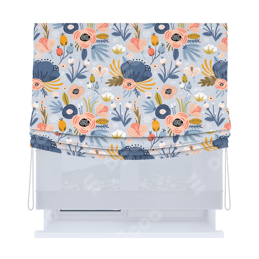 Римская штора «Кортин», день-ночь с мягкими складками, «Волшебные цветы»