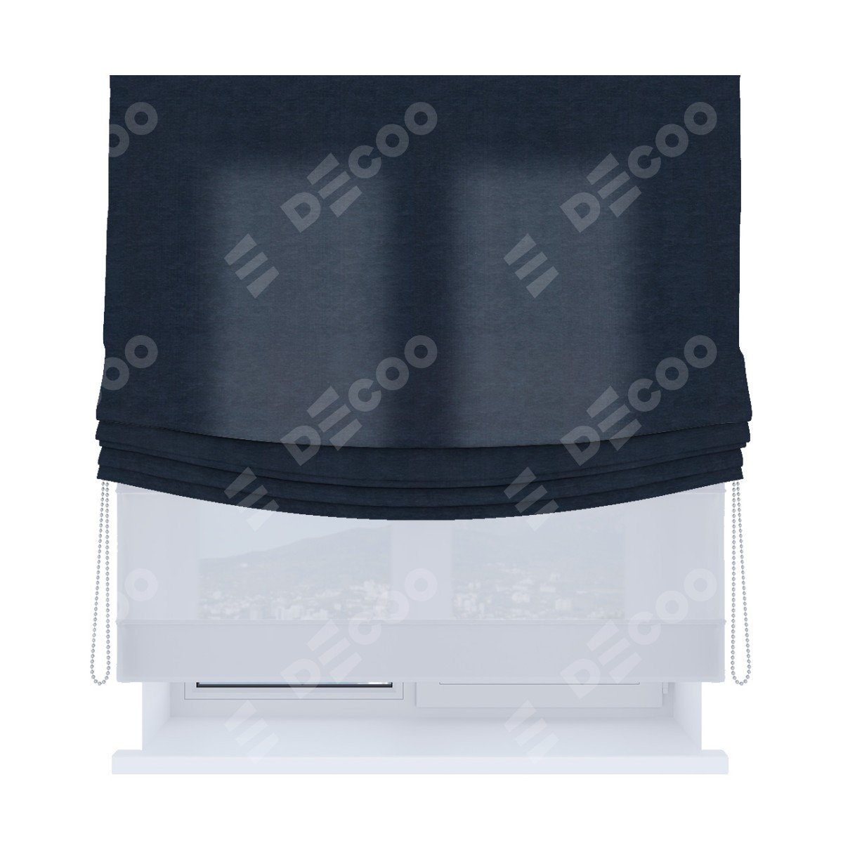 Римская штора день-ночь производителя «Cortin», используется для проёма, пошита из двух полотен, с лицевой стороны софт однотонный тёмно-синий артикул 33111, вторая ткань тюль (по стандарту комплектуется тюль белого цвета артикул V-01). Имеет универсальный механизм и подходит для монтажа: на потолок, на стену и в нишу. Удобное управление каждой шторой отдельно.