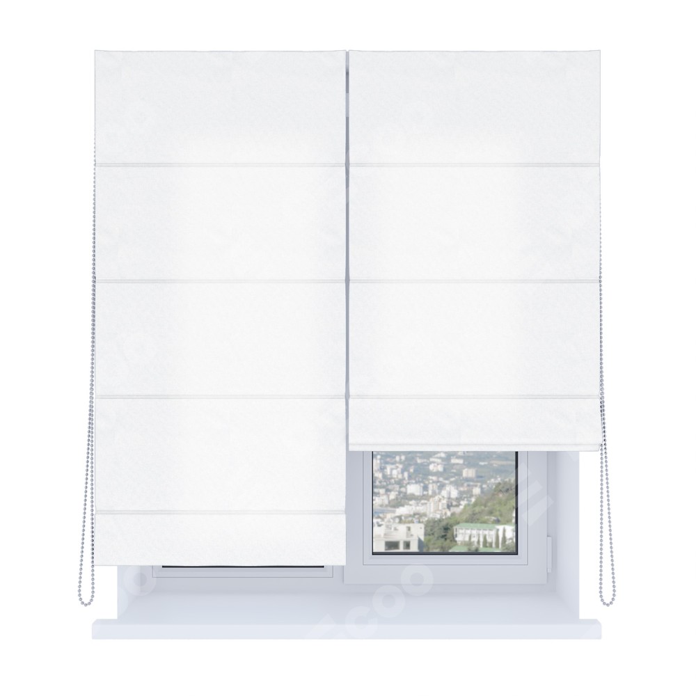 Римская штора производителя «Cortin», используется для проёма, пошита из ткани вельвет белоснежный, артикул ткани 19192. Имеет универсальный механизм и подходит для монтажа: на потолок, на стену и в нишу. Удобное управление каждой шторой отдельно.