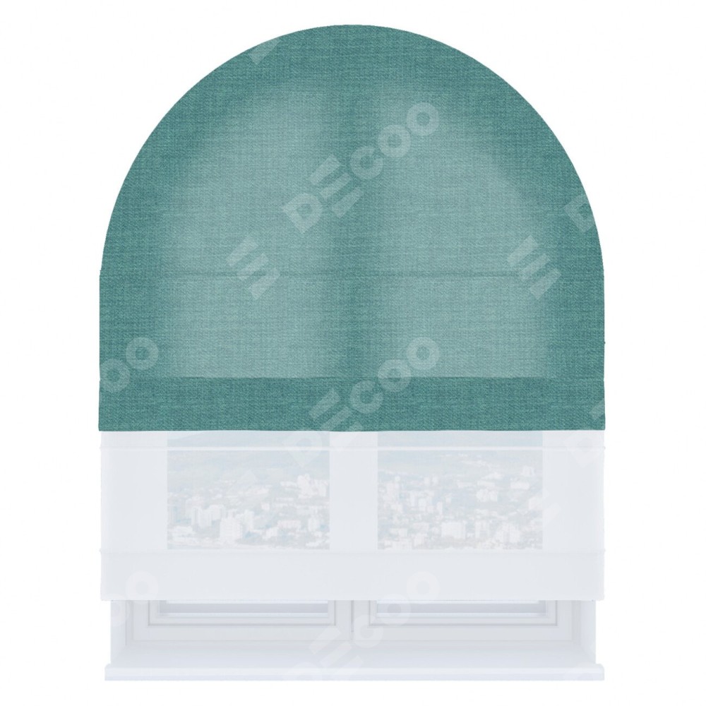 Римская штора день-ночь производителя «Cortin», используется для арочного проёма, пошита из двух полотен, с лицевой стороны лён бирюза артикул 7446, вторая ткань тюль (по стандарту комплектуется тюль белого цвета артикул V-01). Штора шьётся по индивидуальным размерам, для данного типа римской шторы возможная ширина от 60 до 300 см. Удобное управление каждой шторой отдельно.