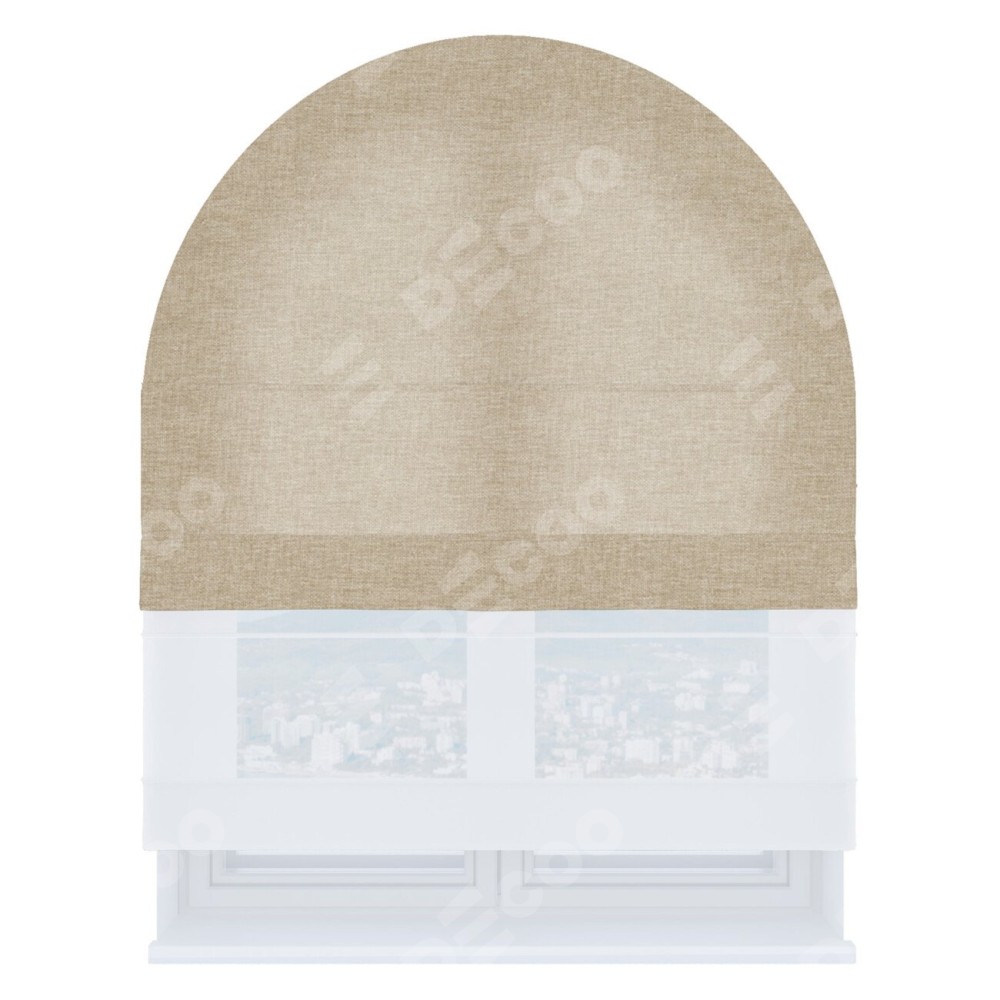 Римская штора день-ночь производителя «Cortin», используется для арочного проёма, пошита из двух полотен, с лицевой стороны лён кашемир бежевый артикул 17206, вторая ткань тюль (по стандарту комплектуется тюль белого цвета артикул V-01). Штора шьётся по индивидуальным размерам, для данного типа римской шторы возможная ширина от 60 до 300 см. Удобное управление каждой шторой отдельно.
