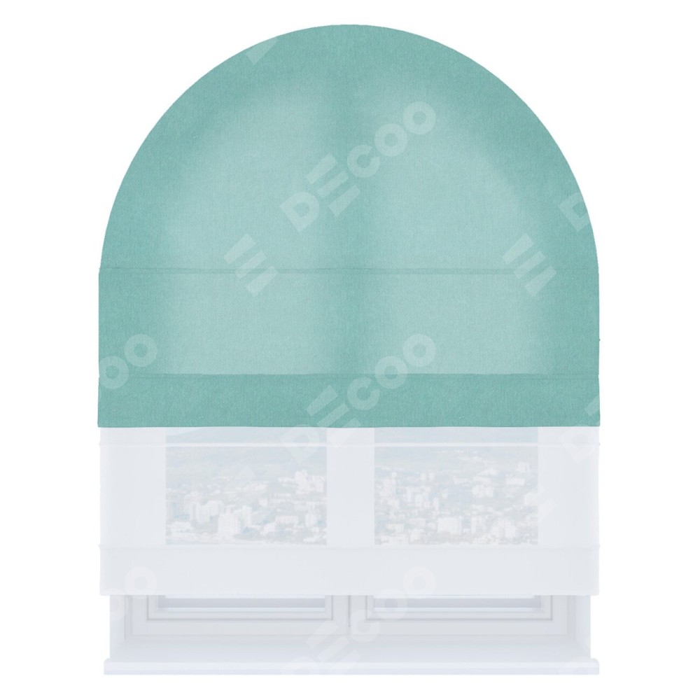 Римская штора день-ночь производителя «Cortin», используется для арочного проёма, пошита из двух полотен, с лицевой стороны вельвет тиффани артикул 17765, вторая ткань тюль (по стандарту комплектуется тюль белого цвета артикул V-01). Штора шьётся по индивидуальным размерам, для данного типа римской шторы возможная ширина от 60 до 300 см. Удобное управление каждой шторой отдельно.