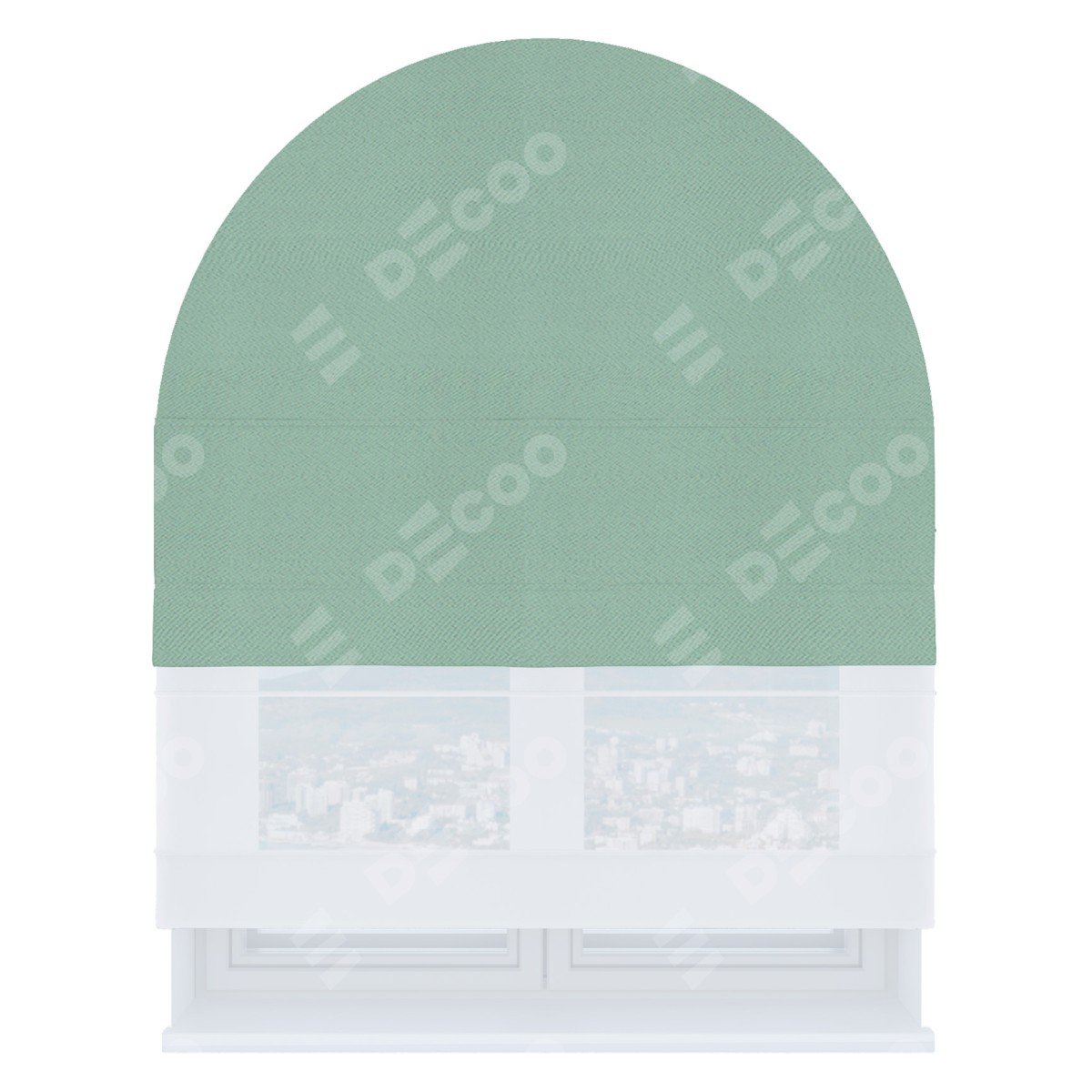 Римская штора день-ночь производителя «Cortin», используется для арочного проёма, пошита из двух полотен, с лицевой стороны блэкаут однотонный ментоловый артикул 29584, вторая ткань тюль (по стандарту комплектуется тюль белого цвета артикул V-01). Штора шьётся по индивидуальным размерам, для данного типа римской шторы возможная ширина от 60 до 300 см. Удобное управление каждой шторой отдельно.