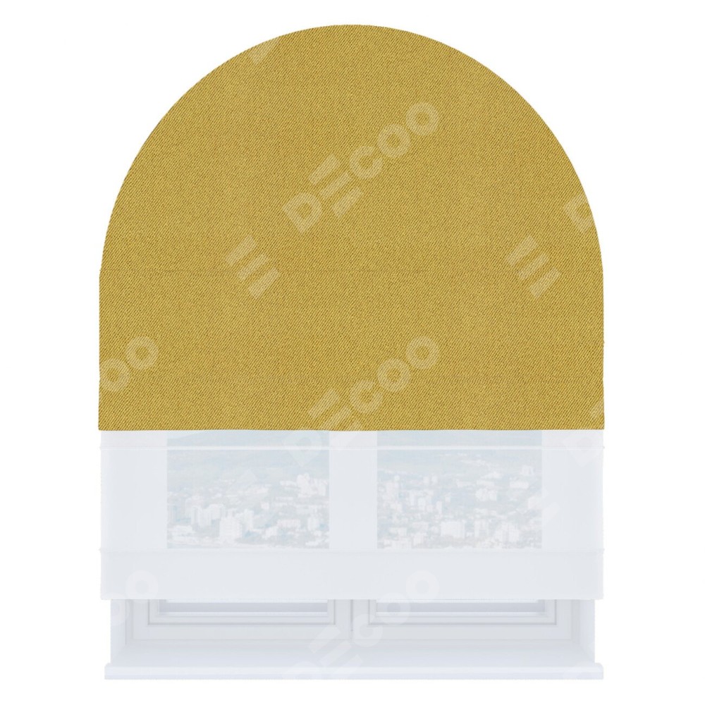 Римская штора «Кортин» день-ночь для арочного проёма, ткань твид блэкаут пыльная горчица