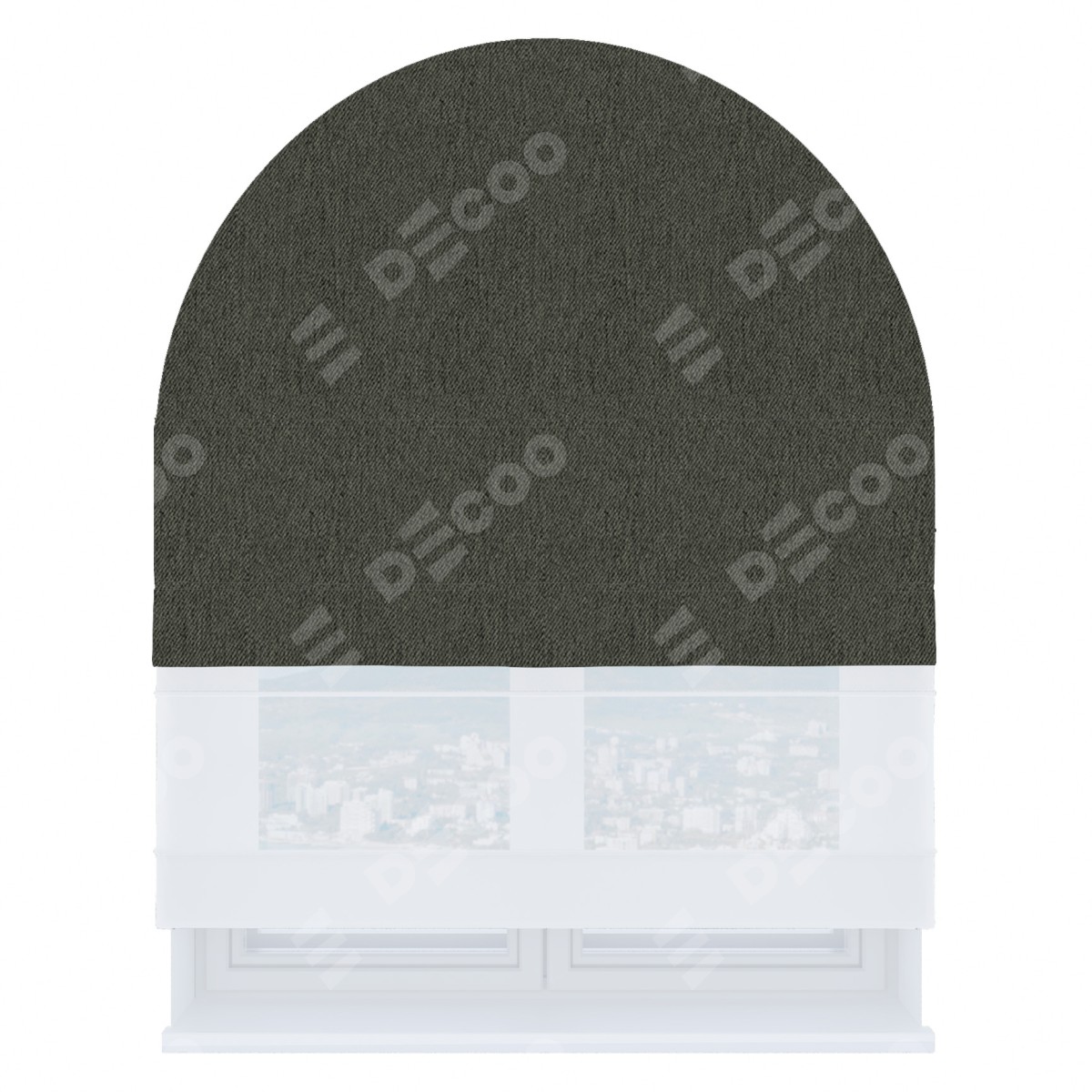 Римская штора день-ночь производителя «Cortin», используется для арочного проёма, пошита из двух полотен, с лицевой стороны твид блэкаут тёмно-серый артикул 21587, вторая ткань тюль (по стандарту комплектуется тюль белого цвета артикул V-01). Штора шьётся по индивидуальным размерам, для данного типа римской шторы возможная ширина от 60 до 300 см. Удобное управление каждой шторой отдельно.