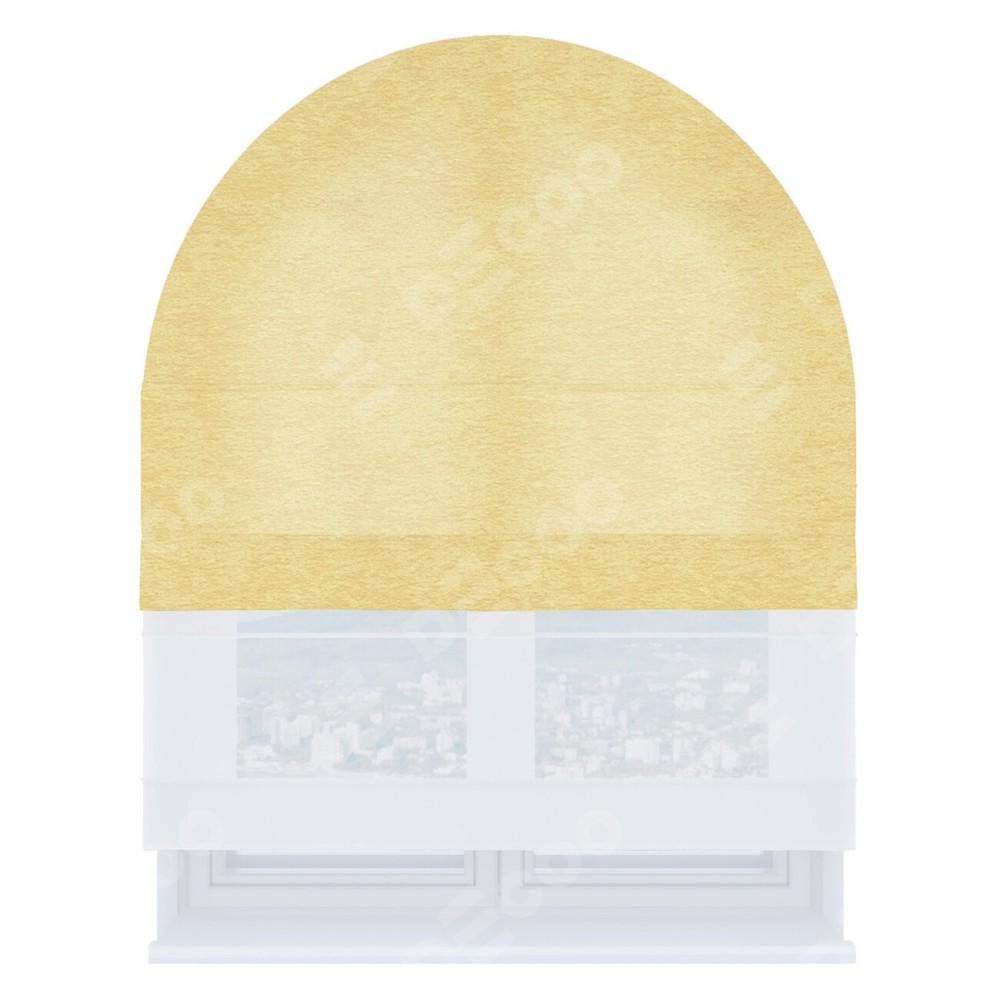 Римская штора день-ночь производителя «Cortin», используется для арочного проёма, пошита из двух полотен, с лицевой стороны софт однотонный золотой артикул 42934, вторая ткань тюль (по стандарту комплектуется тюль белого цвета артикул V-01). Штора шьётся по индивидуальным размерам, для данного типа римской шторы возможная ширина от 60 до 300 см. Удобное управление каждой шторой отдельно.