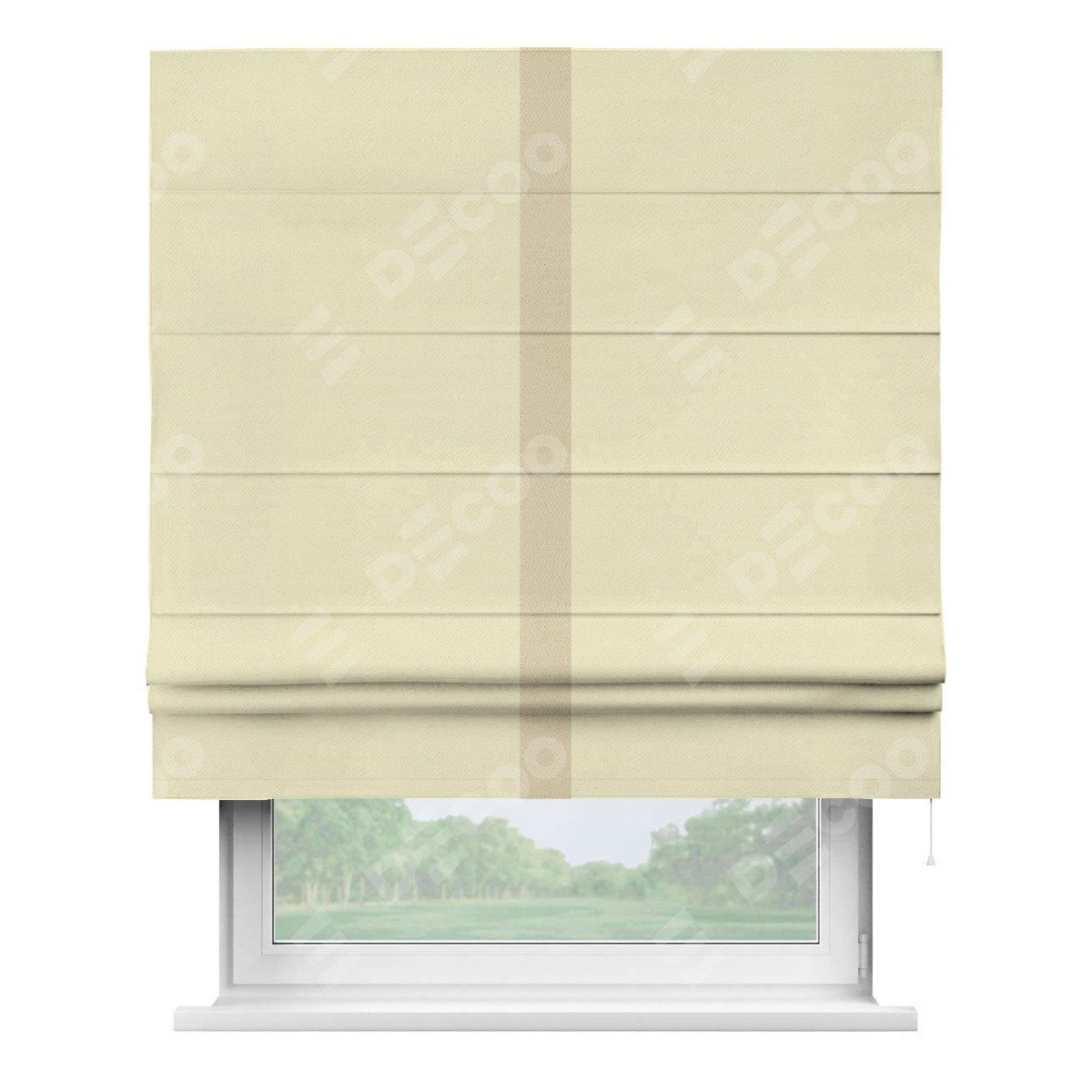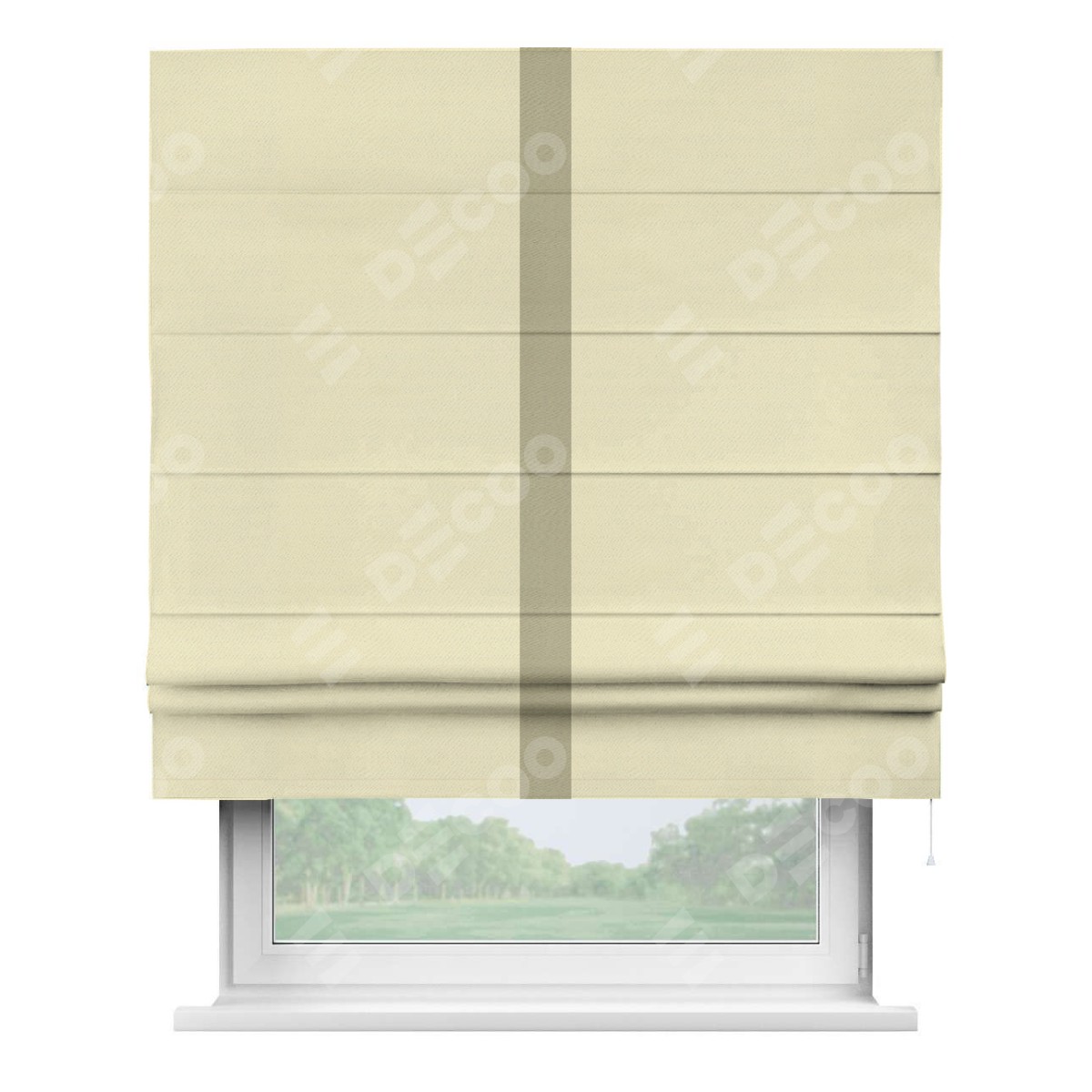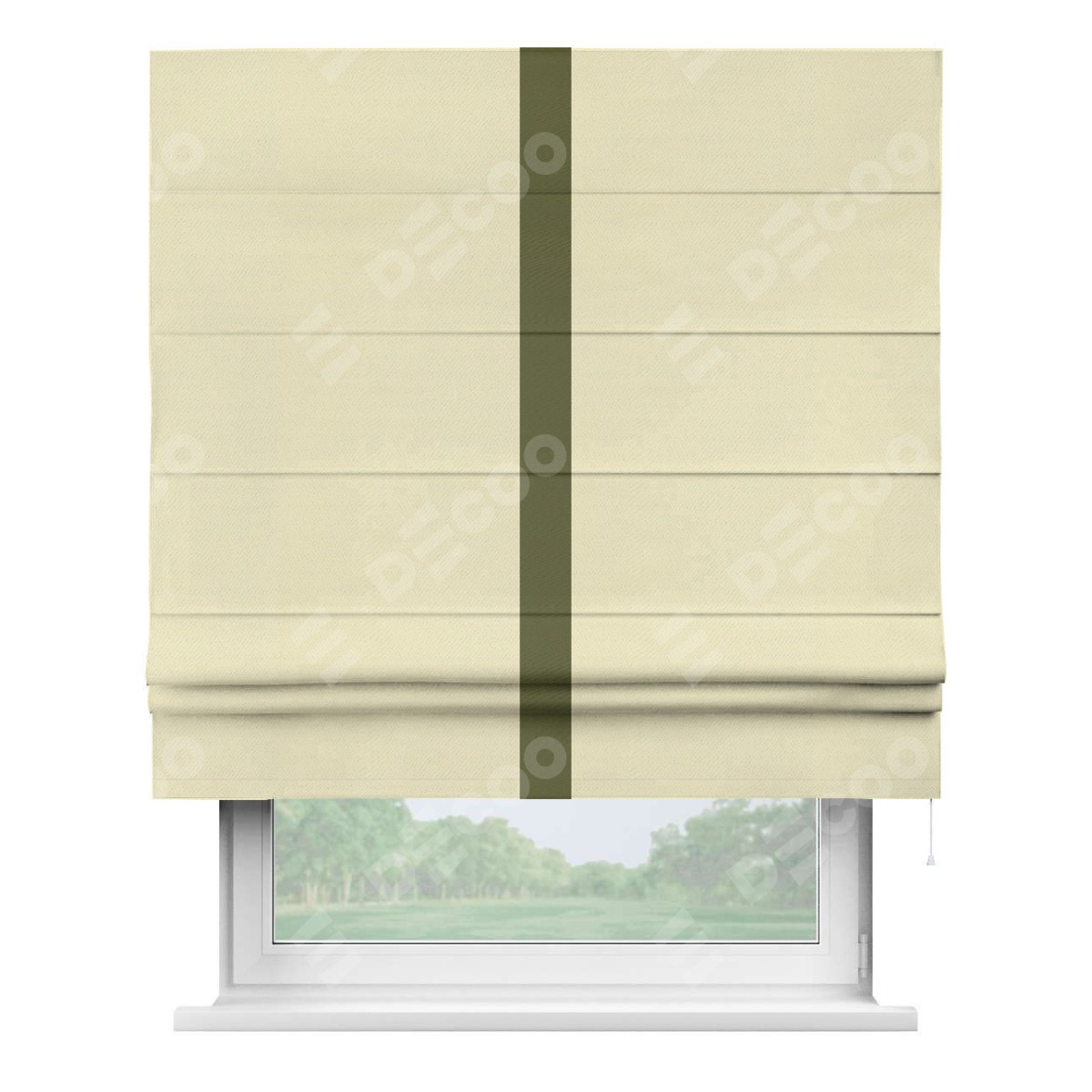Римская штора производителя «Cortin», используется для проёма, пошита из ткани блэкаут однотонный бежевый, артикул ткани 88283. Отделка шторы кантом «Хайвей», ткань для канта используется из блэкаута однотонного разной расцветки на выбор. Имеет универсальный механизм и подходит для монтажа: на потолок, на стену и в нишу.