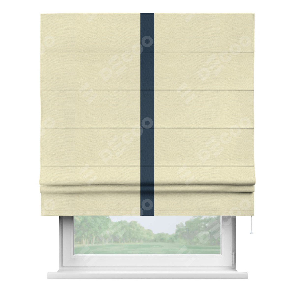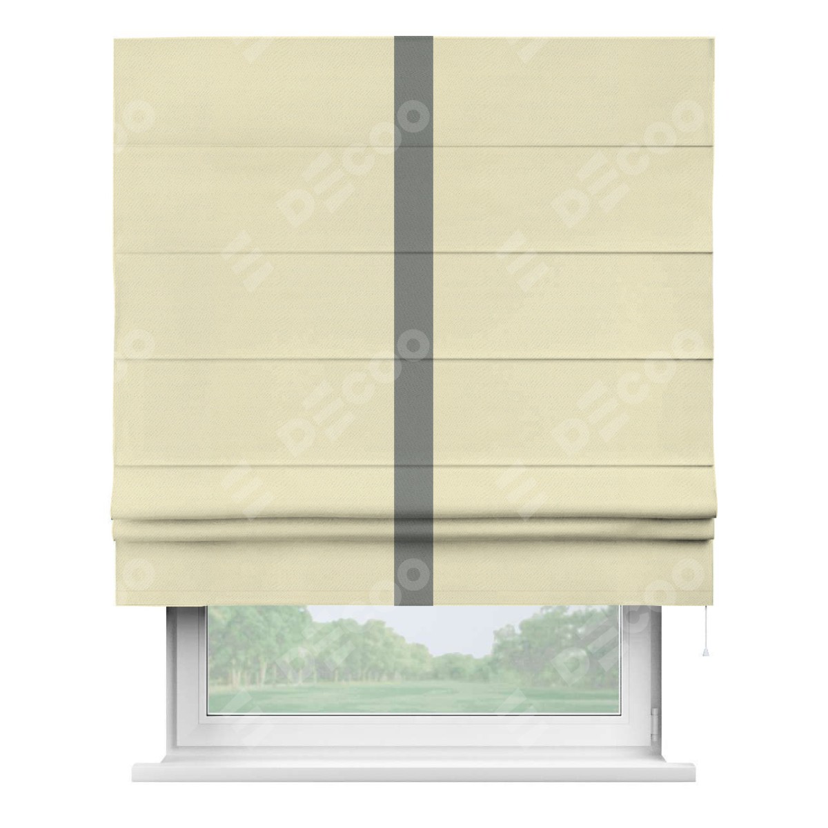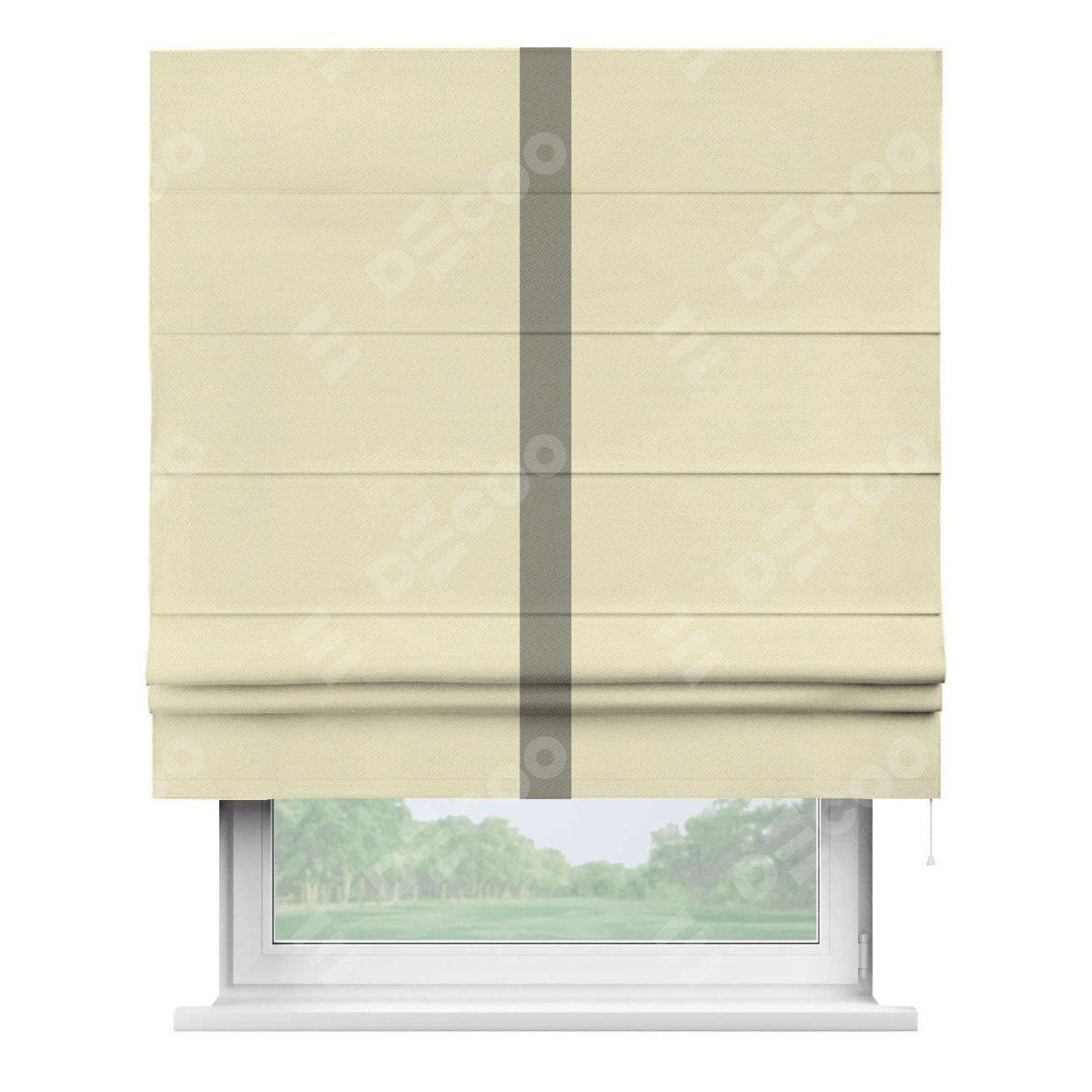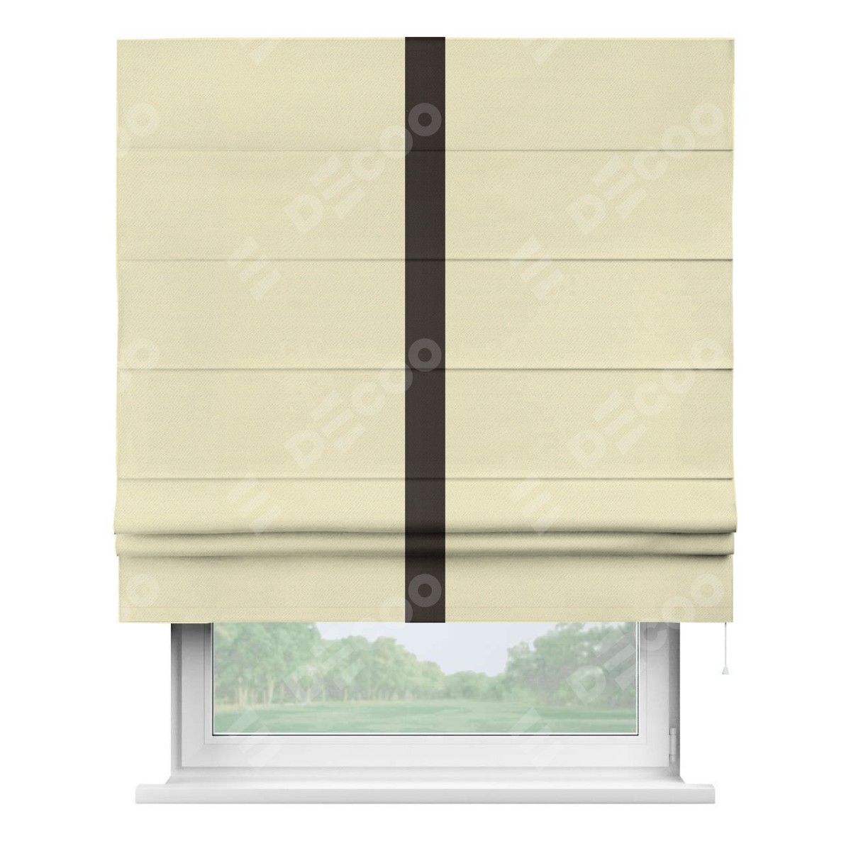 Римская штора производителя «Cortin», используется для проёма, пошита из ткани блэкаут однотонный бежевый, артикул ткани 88283. Отделка шторы кантом «Хайвей», ткань для канта используется из блэкаута однотонного разной расцветки на выбор. Имеет универсальный механизм и подходит для монтажа: на потолок, на стену и в нишу.