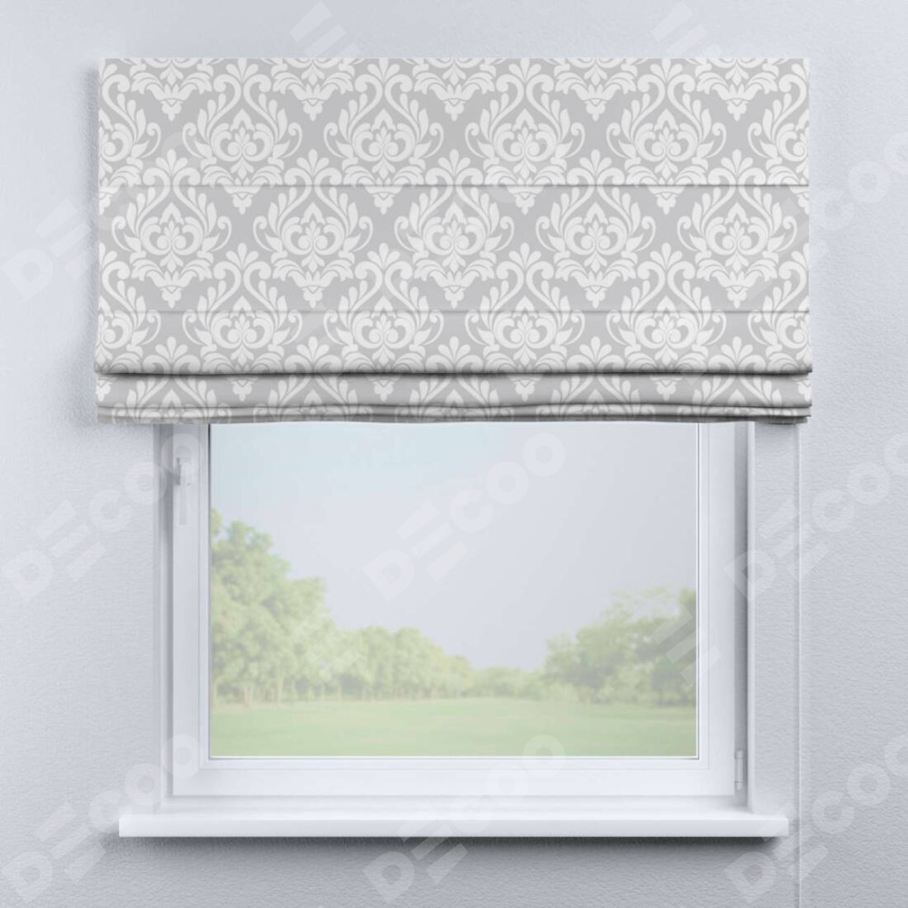 Римская штора производителя «Cortin», используется для проёма, пошита из ткани блэкаут с нанесением сублимационной печати «Дамаск светлый». Имеет универсальный механизм и подходит для монтажа: на потолок, на стену и в нишу.