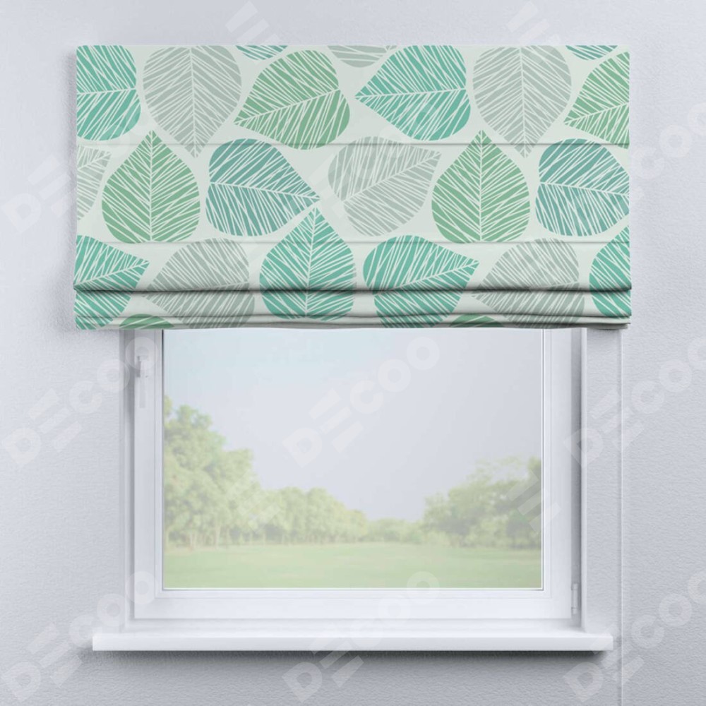 Римская штора производителя «Cortin», используется для проёма, пошита из ткани блэкаут с нанесением сублимационной печати «Весенняя листва». Имеет универсальный механизм и подходит для монтажа: на потолок, на стену и в нишу.