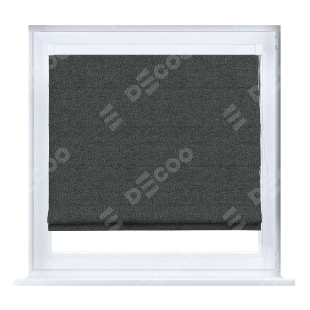 Римская штора производителя «Cortin», устанавливается на створку окна, пошита из ткани стиф димаут графит, артикул 44026. Штора шьётся по индивидуальным размерам, для данного типа римской шторы возможная ширина от 35 до 150 см., высота до 250 см.